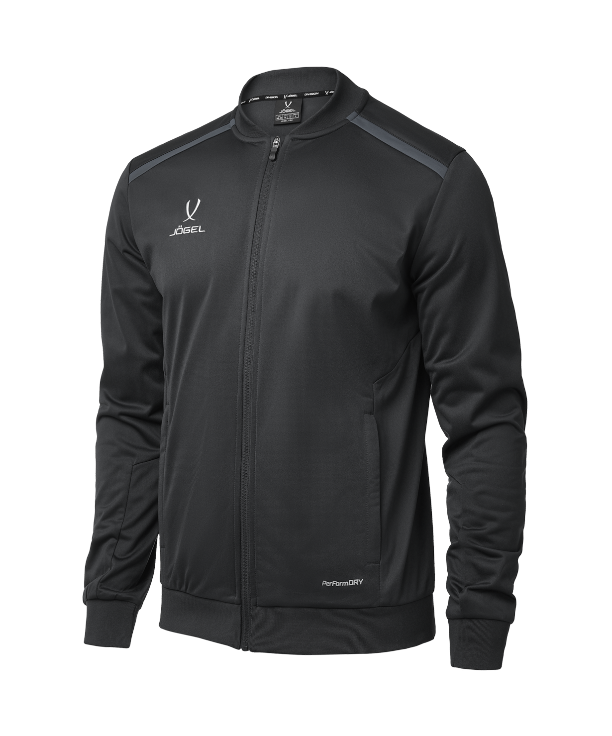 Pre-match Knit Jacket - комфортная олимпийка в классическом спортивном стиле. Модель из плотной бондированной ткани предназначена для профессиональных команд и любителей, а также для носки на каждый день. Передняя застежка и боковые карманы застегиваются на молнии и дополнены логотипом JÖGEL. Ткань, специально разработанная для данной линейки, состоит из нескольких слоев и имеет функцию PerFormDRY, придавая достаточную плотность, но сохраняя мягкость и легкость спортивной олимпийки. Оптимальное прилегание обеспечивается рифленым полотном, из которого изготовлены воротник, манжеты и пояс. Атлетический крой спортивной олимпийки подчеркивается эксклюзивным дизайнерским решением в виде контрастных полос, расположенных спереди на кокетке, а вышивка JÖGEL справа на груди завершает образ. Pre-match Knit Jacket идеально сочетается со спортивными брюками JÖGEL DIVISION PerFormDRY Pre-match Knit Pants.\nPerFormDRY - это специальная технология обработки тканей JÖGEL, которая способствует быстрому выведению влаги и помогает спортсменам чувствовать себя комфортно при интенсивных нагрузках.\nМатериал с технологией PerFormDRY;\nАтлетический крой;\nИспользование технологичной ткани.\nХарактеристики:\nСостав: 100% полиэстер (бондированная ткань с технологией PerFormDRY)\nЦвет: черный\nРазмер: S, M, L, XL, XXL, XXXL\nВид упаковки: пакет зиплок с картонной этикеткой и стикером\nСтрана производства: Китай