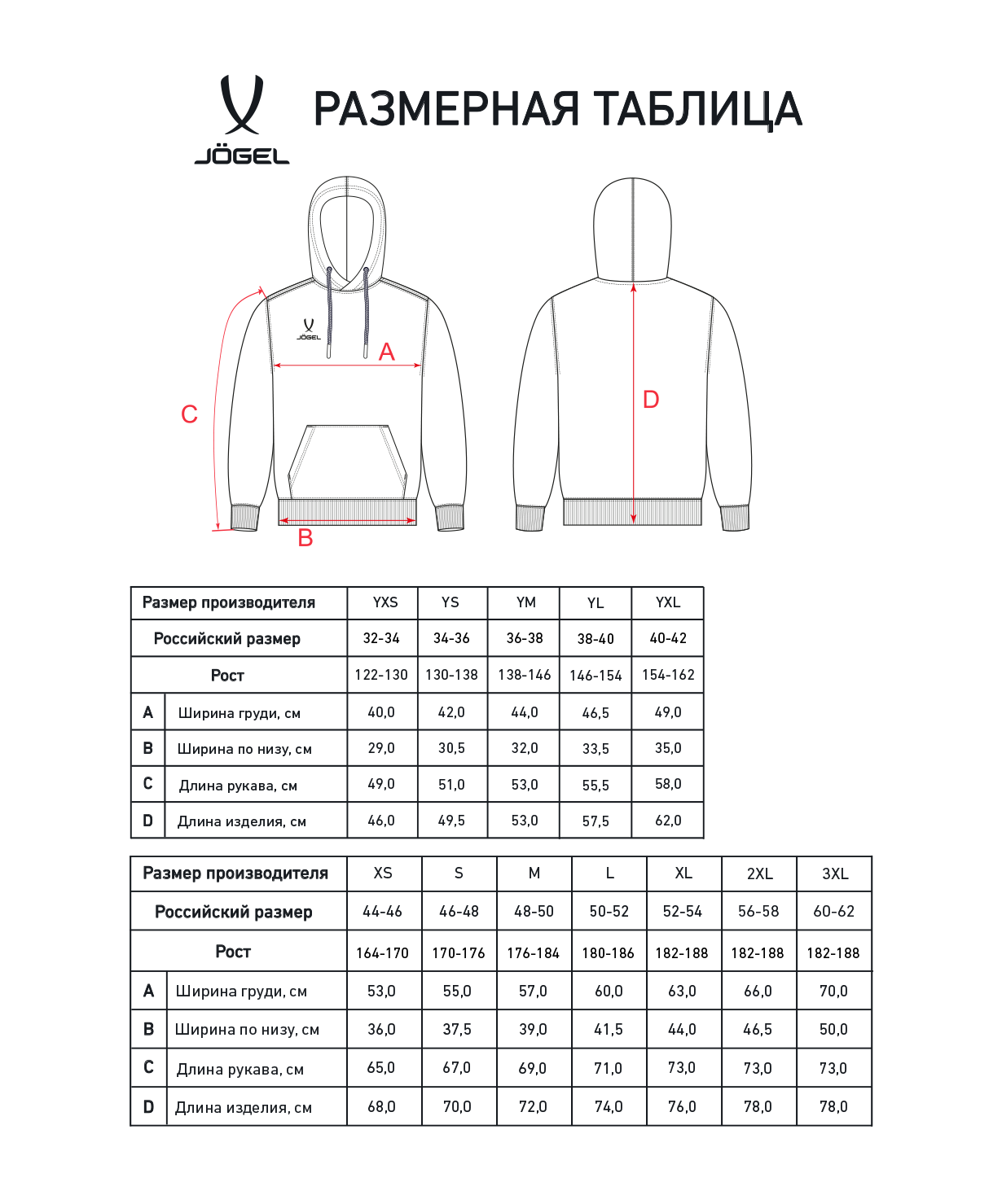 Худи JÖGEL ESSENTIAL Cotton Hoodie – стильная одежда, идеальная для повседневной носки. Модель из износоустойчивой ткани отлично держит форму, не деформируется после стирок и не линяет. Оптимальное сочетание хлопка и полиэстера в составе обеспечивает необходимую мягкость и низкую сминаемость, дополнительный комфорт придает петельчатая изнанка.\nХуди прекрасно подойдет для активного отдыха в теплое время года. Капюшон с регулировкой и широкие манжеты защитят от ветра, а большой удобный карман - от холода. Актуальный минималистичный дизайн впишется в любой гардероб и отлично сочетается со спортивной экипировкой JÖGEL.\nПреимущества:\nДля повседневной носки;\nИзносоустойчивая ткань;\nПетельчатая изнанка, приятная на ощупь;\nРегулируемый капюшон;\nШирокие манжеты;\nЛаконичный дизайн.\nХарактеристики:\nСостав: 70% хлопок, 30% полиэстер (French Terry-трикотажное полотно, гладкое с лицевой стороны и петельчатое с изнанки)\nЦвет: темно-зеленый\nРазмер: YXS, YS, YM, YL, YXL\nТип упаковки: пакет зип-лок с картонной этикеткой и стикером\nСтрана производства: Китай