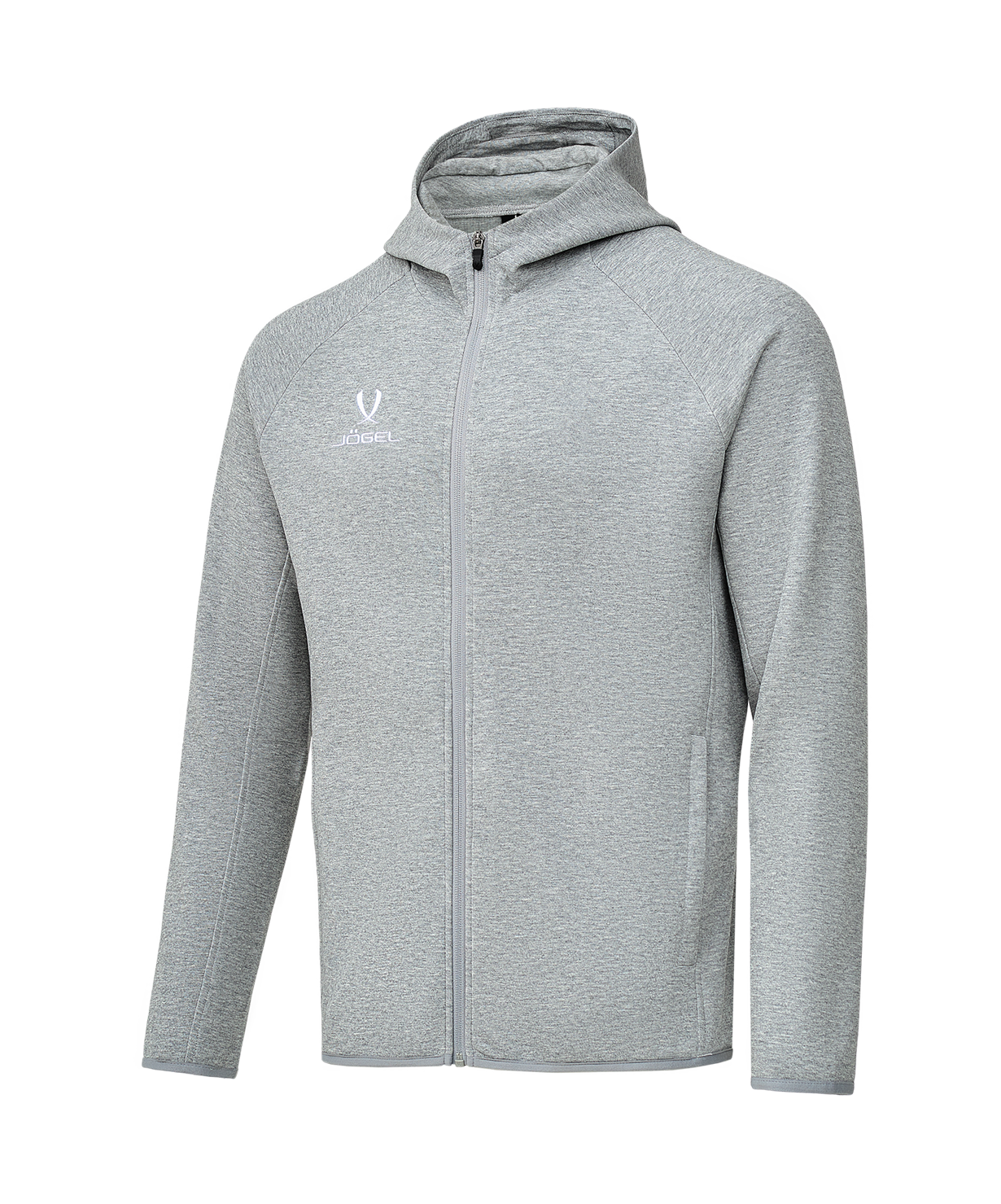 Худи на молнии Jögel ESSENTIAL Athlete Hooded FZ Jacket станет отличным дополнением к любому спортивному гардеробу. Эта удобная модель оптимальна как для тренировок, так и для активного отдыха и повседневной носки. Изделие комфортно и не стесняет движений, а усовершенствованный дизайн худи обеспечивает лучшую посадку по фигуре.\nИзделие выполнено из интерлока, который хорошо сохраняет форму и цвет. Этот материал с высоким содержанием хлопка в составе отличается высокой прочностью и износостойкостью. Он отлично восстанавливается после растяжения и помогает поддерживать комфортную температуру тела. Ткань не линяет и не выцветает даже при регулярной носке.\nХуди дополнено высоким воротником и удобным капюшоном с хлопковой подкладкой, в рельефных швах предусмотрены карманы на молнии. Низ рукавов и изделия обработан эластичной тесьмой, это решение делает посадку еще комфортнее. Широкая размерная сетка позволяет подобрать модель и взрослым, и подросткам, а современный дизайн отлично подойдет к любому образу.\nПреимущества:\nУсовершенствованная посадка по фигуре;\nВысокое содержание хлопка в составе;\nПрочная износостойкая ткань;\nПоддерживает комфортную температуру тела;\nВысокий воротник;\nКарманы на молнии в рельефных швах;\nКапюшон с хлопковой подкладкой.\nХарактеристики:\nСостав: 70% хлопок, 30% полиэстер\nЦвет: серый\nРазмер: XS, S, M, L, XL, XXL, XXXL\nВид упаковки: пакет с зип лок, картонная этикетка с стикером\nСтрана производства: Китай