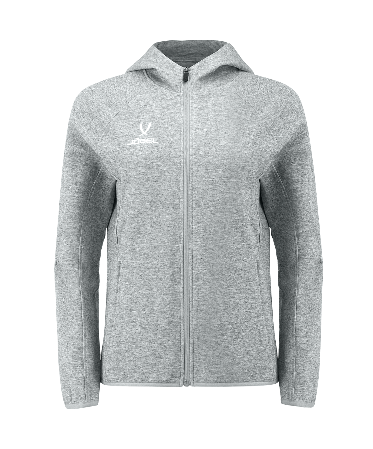 Женское худи на молнии Jögel ESSENTIAL Athlete Hooded FZ Jacket W станет отличным дополнением к любому спортивному гардеробу. Эта удобная модель оптимальна как для тренировок, так и для активного отдыха и повседневной носки. Посадка максимально комфортна: прилегающий силуэт продуман с учетом рельефа женской фигуры.\nИзделие выполнено из интерлока, который хорошо сохраняет форму и цвет. Этот материал с высоким содержанием хлопка в составе отличается высокой прочностью и износостойкостью. Он отлично восстанавливается после растяжения и помогает поддерживать комфортную температуру тела. Ткань не линяет и не выцветает даже при регулярной носке.\nХуди дополнено высоким воротником и удобным капюшоном с хлопковой подкладкой. В рельефных швах предусмотрены карманы на молнии. Низ рукавов и изделия обработан эластичной тесьмой, это решение делает посадку еще комфортнее. Модель представлена в востребованных размерах, а ее современный дизайн отлично подойдет к любому образу.\nПреимущества:\nПосадка адаптирована под особенности женской фигуры;\nПрилегающий силуэт;\nВысокое содержание хлопка в составе;\nПрочная износостойкая ткань;\nПоддерживает комфортную температуру тела;\nВысокий воротник;\nКарманы на молнии в рельефных швах;\nКапюшон с хлопковой подкладкой.\nХарактеристики:\nСостав: 70% хлопок, 30% полиэстер\nЦвет: серый\nРазмер: XS, S, M, L, XL\nВид упаковки: пакет с зип лок, картонная этикетка с стикером\nСтрана производства: Китай
