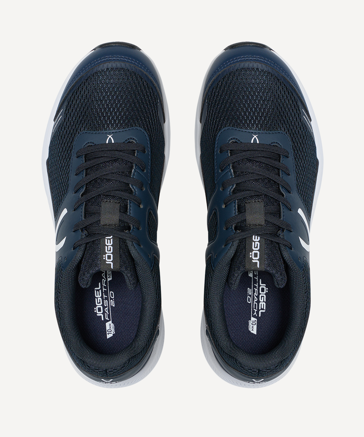 Обновление материалов в любимой модели! FASTTRACK 2.0 – идеальное решение для занятий спортом и повседневной носки. Поддержка стопы при помощи облегченного ПУ на берце и в пяточной части, вентилируемая конструкция благодаря сетке в союзке и мягком канте для дополнительного комфорта во время движения – эти кроссовки идеально подойдут для спортсменов, которые ценят удобную и долговечную обувь.\nФорма промежуточной подошвы из Elastlon с перекатом в 10 мм отвечает за поддержку и гибкость, плавный ход и гашение ударных нагрузок. Подошва хорошо амортизирует, обеспечивая комфорт при ходьбе и беге. Резиновая подметка отлично держит сцепление с поверхностью, а наличие светоотражающих элементов делает тренировки безопаснее в вечернее время суток.\nВ производстве обуви JÖGEL используются только качественные материалы, обувь легко моется и не требует дополнительного ухода.\nПреимущества:\nПоддержка стопы при помощи облегченного ПУ на берце и в пяточной части;\nВентилируемая конструкция для дополнительного комфорта;\nПромежуточная подошва из Elastlon;\nНадежное сцепление с поверхностью;\nСветоотражающие элементы.\nХарактеристики:\nМатериал верха: термополиуретан, полиуретан, текстиль\nМатериал подкладки обуви: текстиль\nМатериал подошвы обуви: эластлон, резина\nМатериал стельки: этиленвинилацетат, текстиль\nПолнота обуви: Е\nРазмерный ряд: 36-47 (RU)\nОсновной цвет: синий\nДополнительные цвета: белый\nВид застежки: шнурки\nНазначение обуви: спорт, повседневная\nКомплектация: кроссовки, коробка\nВес пары, г: 550\nТип упаковки: коробка со стикером\nСтрана производства: Китай