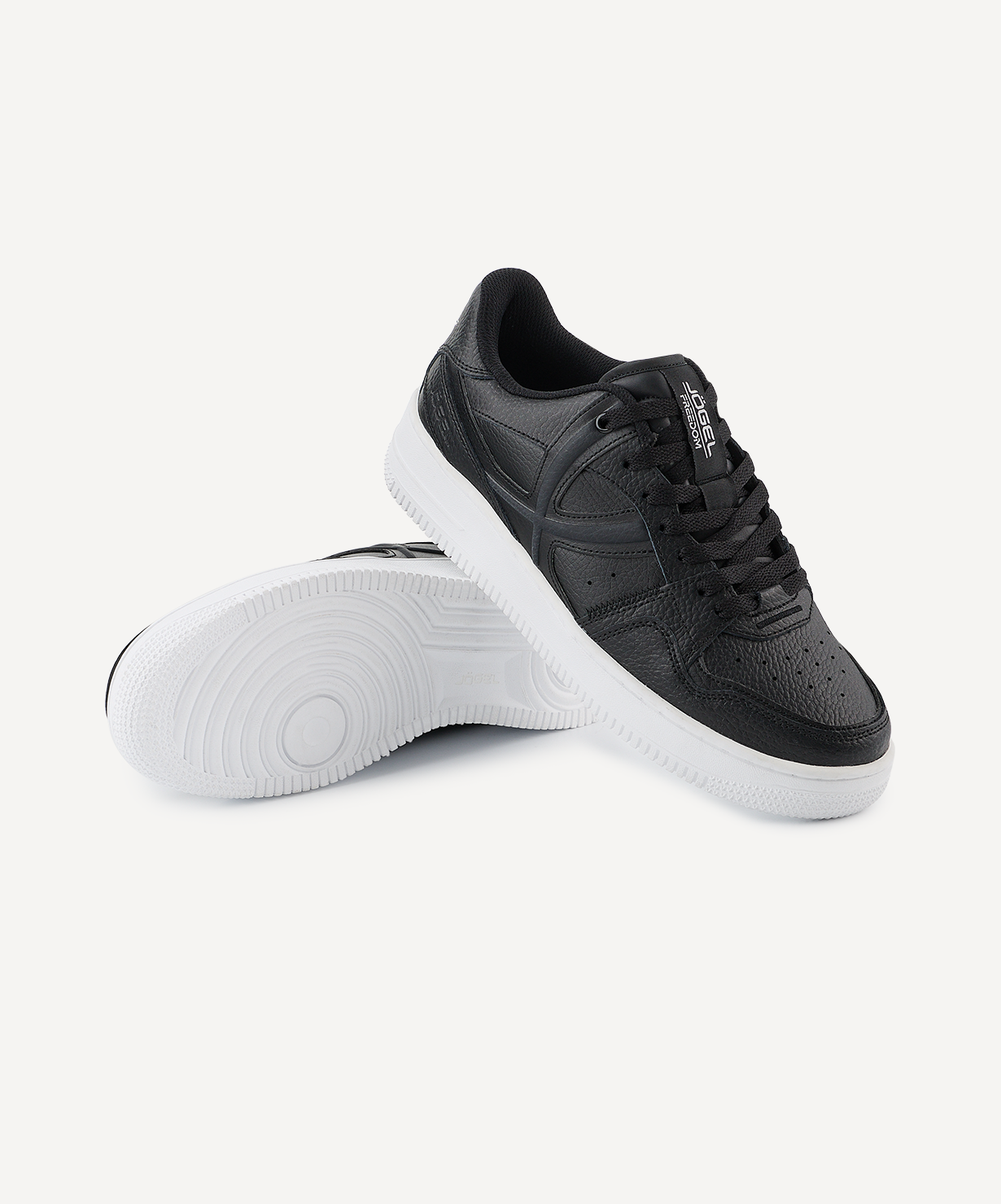Новые цвета любимой модели! Спортивные кроссовки Freedom от Jögel – превосходный вариант для повседневной носки. Верх обуви выполнен из натуральной кожи Action, обладающей хорошей износостойкостью благодаря полимерному покрытию. Ее можно носить как в сухую, так и в дождливую погоду, ведь она сохраняет отличный внешний вид в любых ситуациях.\nСтильный дизайн верха кроссовок отлично подходит к любому гардеробу, а массивная подошва из мягкой резины отвечает за качественную амортизацию.\nДля производства спортивной обуви Jögel используются только проверенные материалы. Кожаные кеды легко моются и не требуют дополнительного ухода.\nСила внутри! А еще внутри каждой коробки с кроссовками вы найдете стильные стикеры с изображениями командных видов спорта и логотипом Jögel. Их можно наклеить на любую ровную и гладкую поверхность, добавив индивидуальности своим аксессуарам.\nПреимущества:\nВерх из натуральной кожи с полимерным покрытием;\nИзносостойкая модель;\nНе боятся попадания влаги;\nВысокая подошва из долговечной резины;\nЗадинки с бархатистой поверхностью;\nЛаконичный дизайн.\nХарактеристики:\nМатериал верха: кожа экшен, полиуретан\nМатериал подкладки обуви: текстиль (полиэстер)\nМатериал подошвы обуви: этиленвинилацетат, резина\nМатериал стельки: этиленвинилацетат, текстиль\nПолнота обуви: Е\nРазмерный ряд: 36-46 (RU)\nОсновной цвет: черный\nДополнительные цвета: белый\nВид застежки: шнурки\nКомплектация: кроссовки, коробка\nВес пары, г: 750\nТип упаковки: коробка со стикером\nСтрана производства: Китай