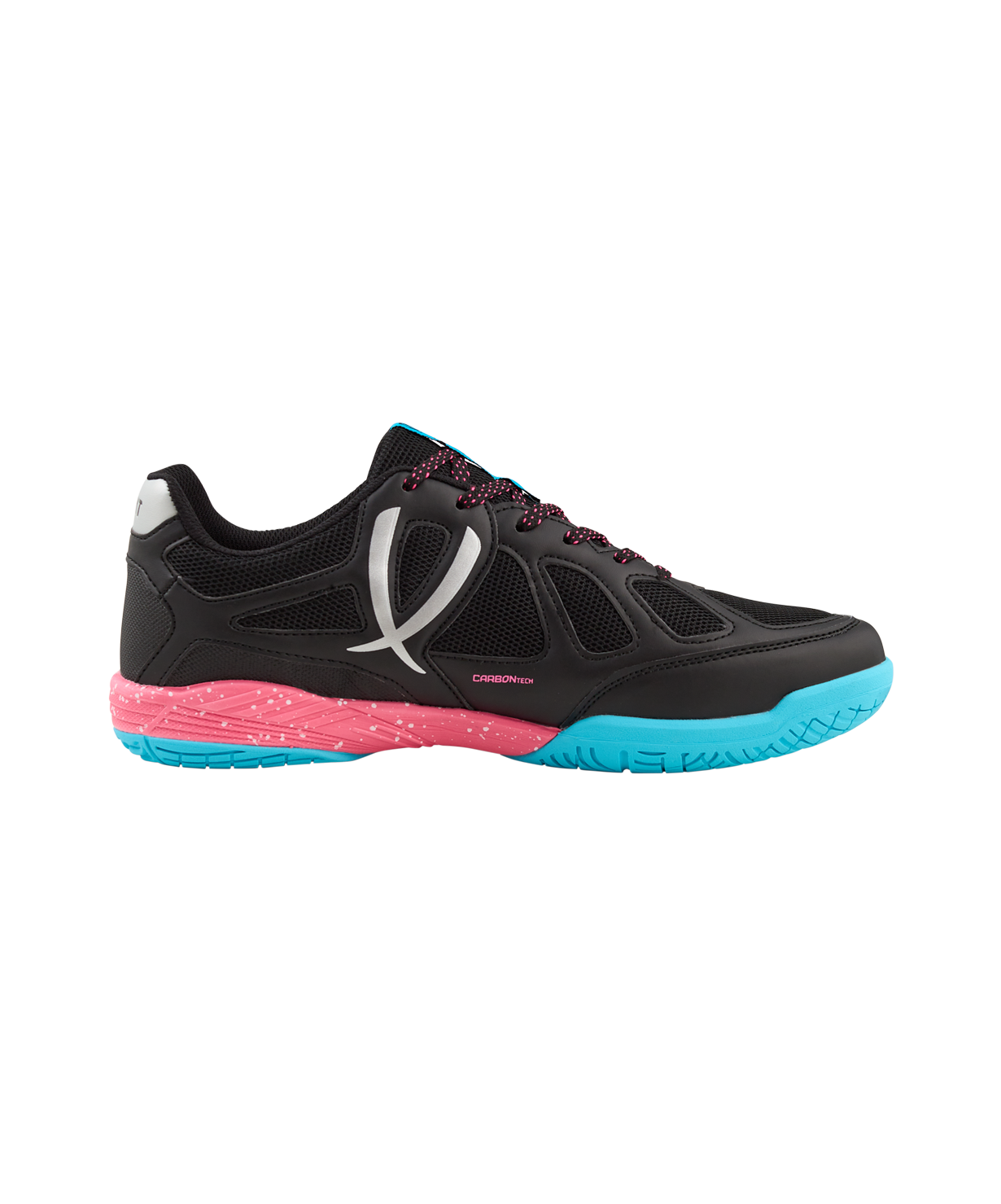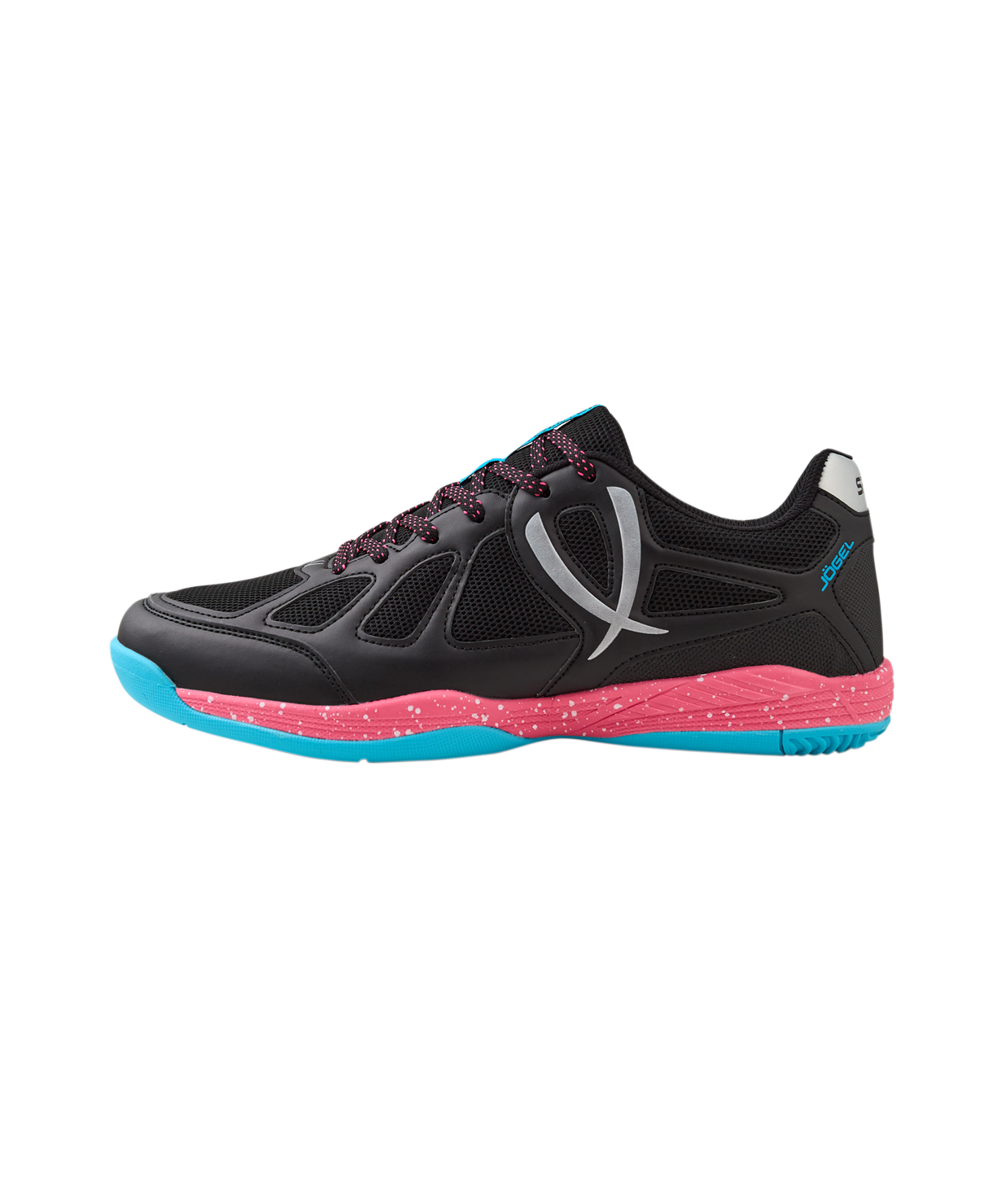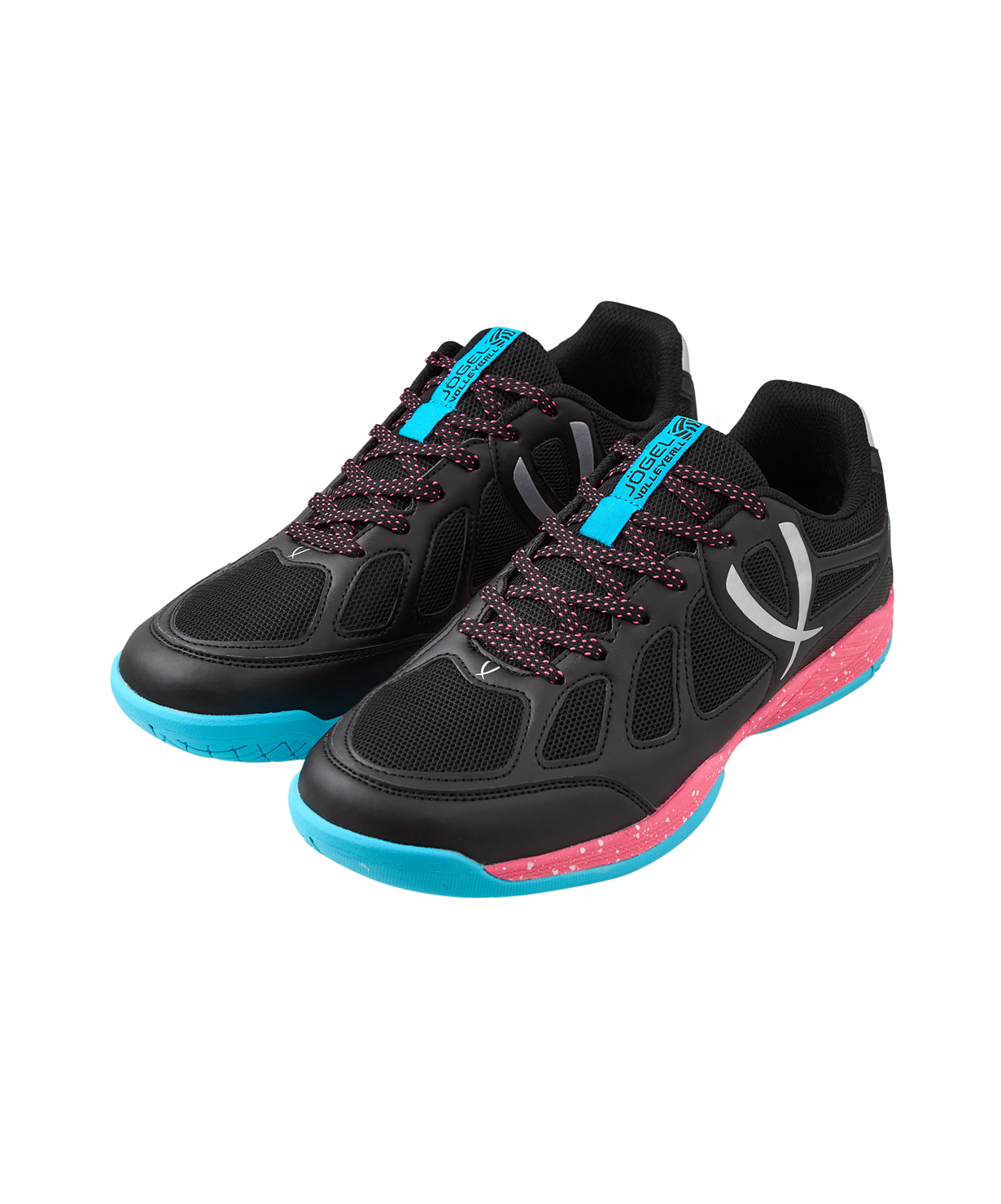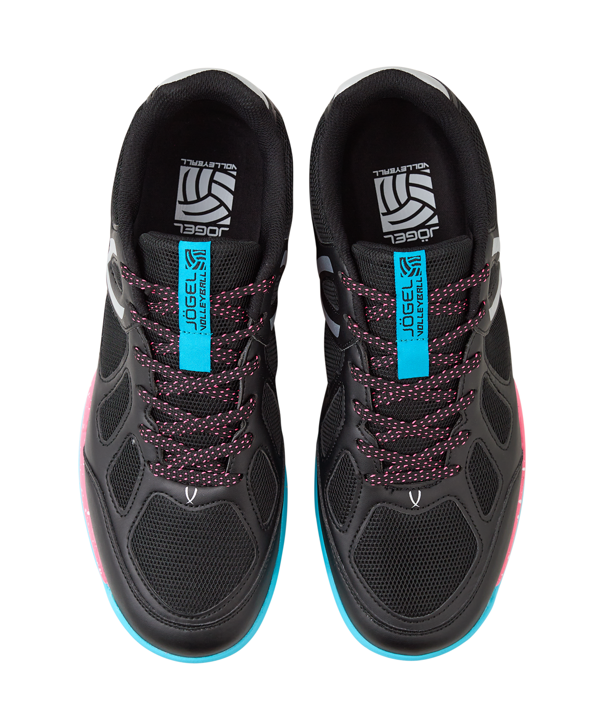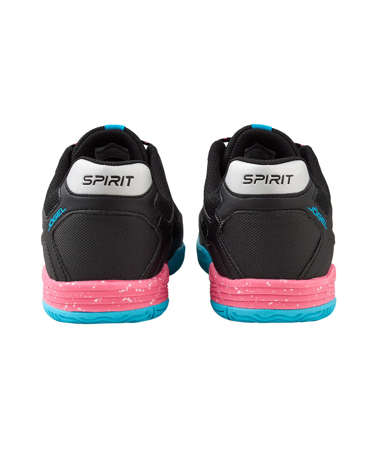 Волейбольные кроссовки SPIRIT - спортивная обувь, которая оптимальна для тренировок и повседневной носки. В конструкции SPIRIT применена технология Carbontech, обеспечивающая отличную поддержку и устойчивость стопе. Благодаря используемой сетке кроссовки для волейбола SPIRIT имеют лучшую вентиляцию и малый вес. Подошва, состоящая из Phylon, дает максимальную амортизацию и защиту суставов от ударных нагрузок во время движения, а резиновая подметка, выполненная по технологии Non-marking, отвечает за отсутствие следов на паркете и качественное сцепление с поверхностью.\nВ производстве волейбольной обуви Jögel используются только качественные материалы, изделия легко моются и не требуют дополнительного ухода.\nПреимущества:\nТехнология Carbontech. Специальная карбоновая вставка в подошве для устойчивости и поддержки стопы во время занятий спортом;\nТехнология Non-Marking. Подметка не оставляет следов на поверхности пола и обеспечивает отличное сцепление;\nПромежуточная подошва Phylon 65% дает необходимые гибкость и амортизацию.\nХарактеристики:\nРекомендованные покрытия: паркет, ровные твердые поверхности\nМатериал верха: полиуретан, текстиль\nМатериал подкладки обуви: текстиль\nМатериал подошвы обуви: филон, резина\nМатериал стельки: ЭВА, текстиль\nПолнота обуви: Е\nРазмерный ряд: 35-44 (RU)\nОсновной цвет: черный\nДополнительные цвета: розовый/бирюзовый\nВид застежки: шнурки\nТип подошвы: зальная\nКомплектация: кроссовки, упаковка\nВес пары, г: 764\nТип упаковки: коробка со стикером\nСтрана производства: Китай