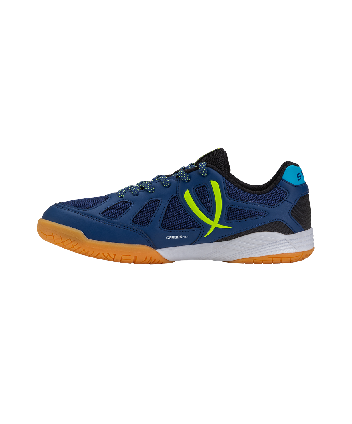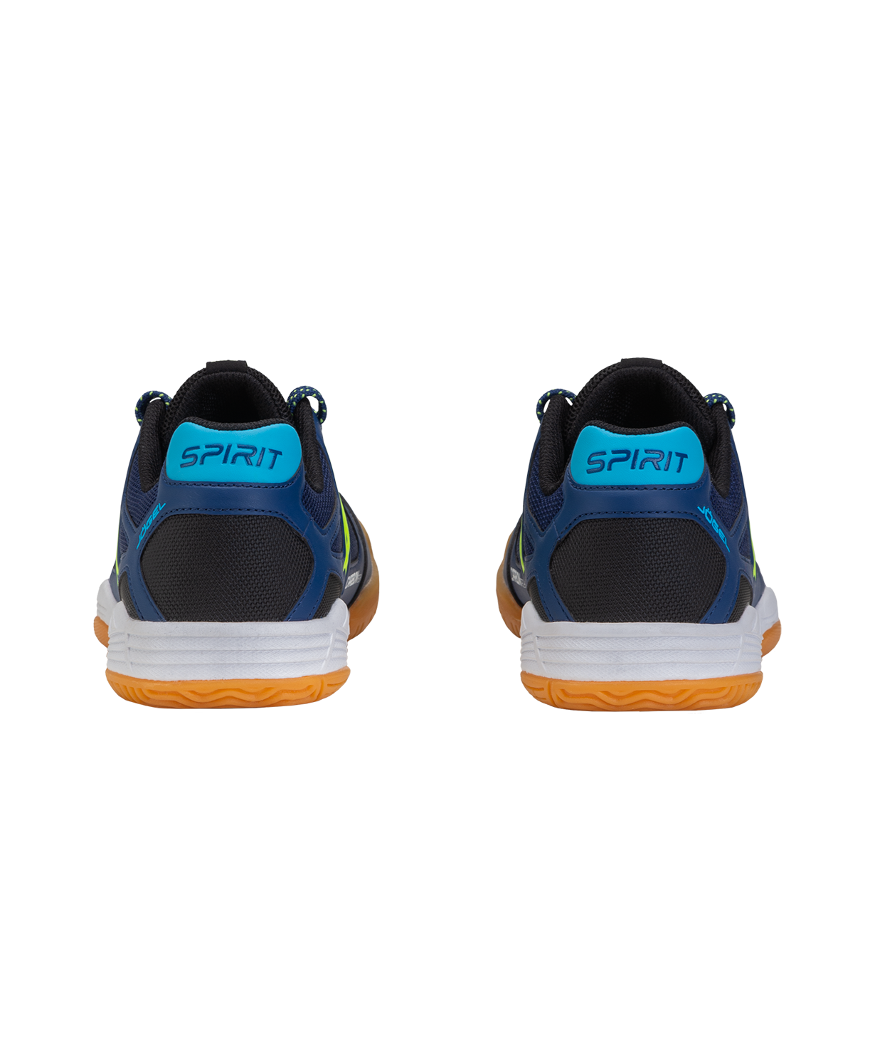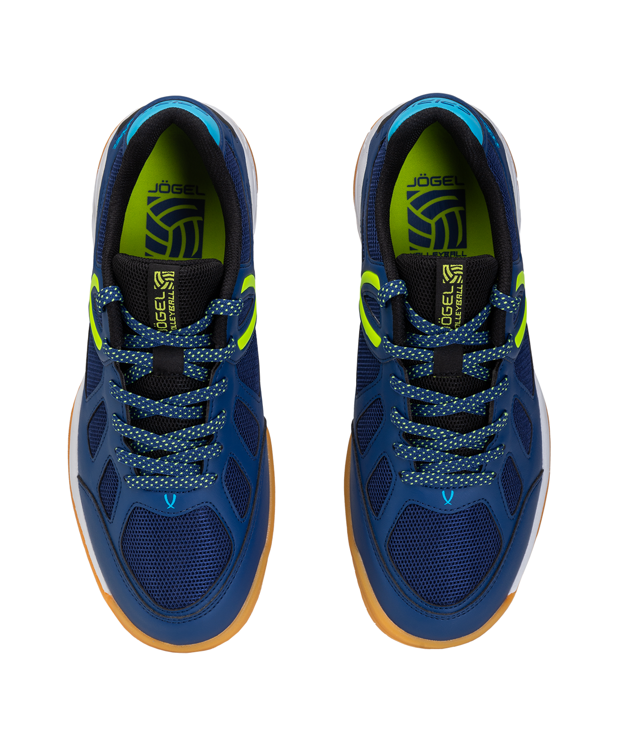 Любимая модель в новом цвете! Волейбольные кроссовки SPIRIT - спортивная обувь, которая оптимальна для тренировок и повседневной носки. В конструкции SPIRIT применена технология Carbontech, обеспечивающая отличную поддержку и устойчивость стопе. Благодаря используемой сетке кроссовки для волейбола SPIRIT имеют лучшую вентиляцию и малый вес. Подошва, состоящая из Phylon, дает максимальную амортизацию и защиту суставов от ударных нагрузок во время движения, а резиновая подметка, выполненная по технологии Non-marking, отвечает за отсутствие следов на паркете и качественное сцепление с поверхностью.\nВ производстве волейбольной обуви Jögel используются только качественные материалы, изделия легко моются и не требуют дополнительного ухода.\nТехнология Carbontech. Специальная карбоновая вставка в подошве для устойчивости и поддержки стопы во время занятий спортом;\nТехнология Non-Marking. Подметка не оставляет следов на поверхности пола и обеспечивает отличное сцепление;\nПромежуточная подошва Phylon 65% дает необходимые гибкость и амортизацию.\nСила внутри! А еще внутри каждой коробки с кроссовками вы найдете стильные стикеры с изображениями командных видов спорта и логотипом Jögel. Их можно наклеить на любую ровную и гладкую поверхность, добавив индивидуальности своим аксессуарам.\nХарактеристики:\nРекомендованные покрытия: паркет, ровные твердые поверхности\nМатериал верха: полиуретан, текстиль\nМатериал подкладки обуви: текстиль\nМатериал подошвы обуви: филон, резина\nМатериал стельки: ЭВА, текстиль\nПолнота обуви: Е\nРазмерный ряд: 35-45 (RU)\nОсновной цвет: синий\nДополнительные цвета: лаймовый\nВид застежки: шнурки\nТип подошвы: зальная\nКомплектация: кроссовки, дополнительный комплект шнурков, упаковка\nВес пары, г: 730\nТип упаковки: коробка со стикером\nСтрана производства: Китай