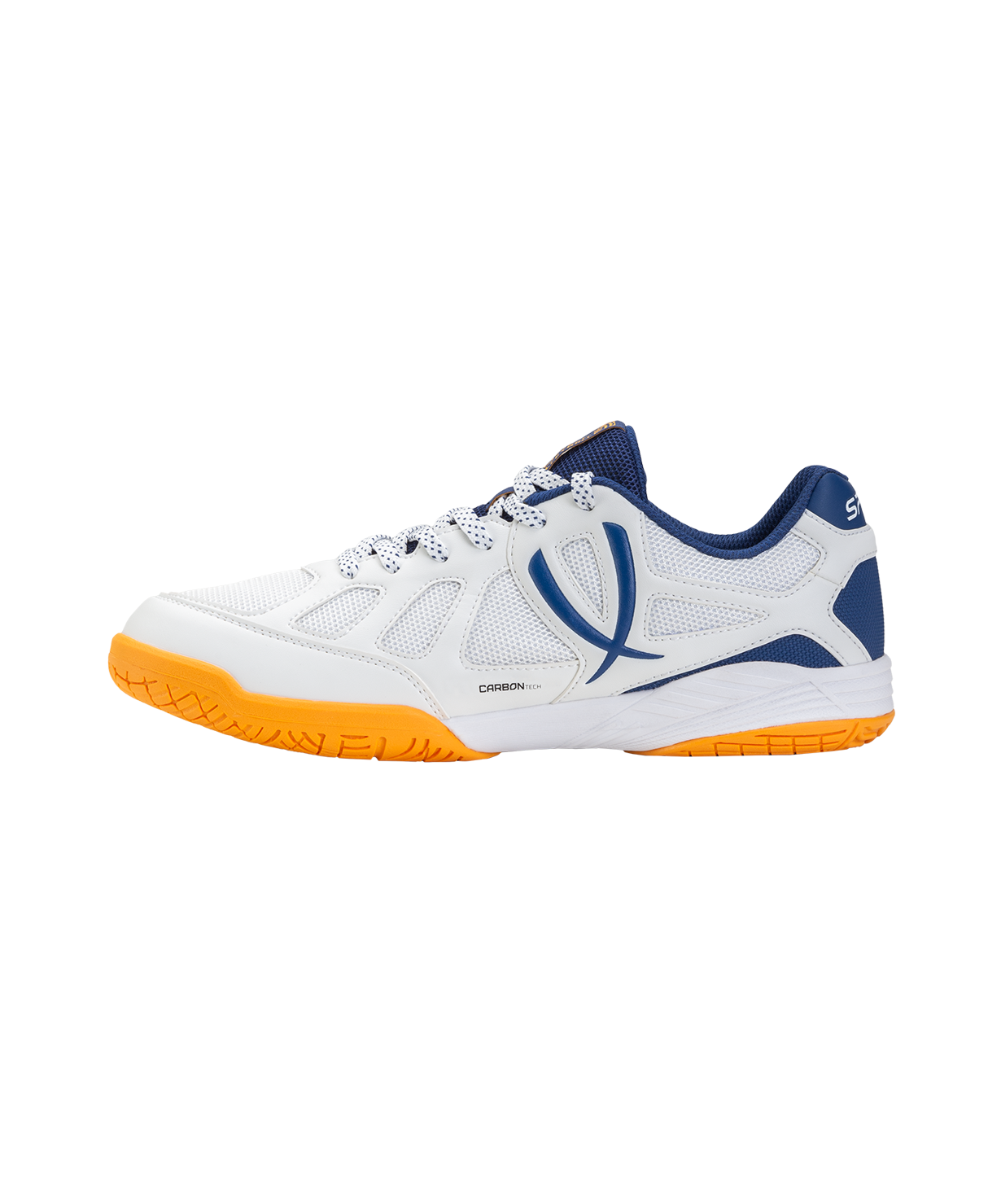 Любимая модель в новом цвете! Волейбольные кроссовки SPIRIT - спортивная обувь, которая оптимальна для тренировок и повседневной носки. В конструкции SPIRIT применена технология Carbontech, обеспечивающая отличную поддержку и устойчивость стопе. Благодаря используемой сетке кроссовки для волейбола SPIRIT имеют лучшую вентиляцию и малый вес. Подошва, состоящая из Phylon, дает максимальную амортизацию и защиту суставов от ударных нагрузок во время движения, а резиновая подметка, выполненная по технологии Non-marking, отвечает за отсутствие следов на паркете и качественное сцепление с поверхностью.\nВ производстве волейбольной обуви Jögel используются только качественные материалы, изделия легко моются и не требуют дополнительного ухода.\nТехнология Carbontech. Специальная карбоновая вставка в подошве для устойчивости и поддержки стопы во время занятий спортом;\nТехнология Non-Marking. Подметка не оставляет следов на поверхности пола и обеспечивает отличное сцепление;\nПромежуточная подошва Phylon 65% дает необходимые гибкость и амортизацию.\nСила внутри! А еще внутри каждой коробки с кроссовками вы найдете стильные стикеры с изображениями командных видов спорта и логотипом Jögel. Их можно наклеить на любую ровную и гладкую поверхность, добавив индивидуальности своим аксессуарам.\nХарактеристики:\nРекомендованные покрытия: паркет, ровные твердые поверхности\nМатериал верха: полиуретан, текстиль\nМатериал подкладки обуви: текстиль\nМатериал подошвы обуви: филон, резина\nМатериал стельки: ЭВА, текстиль\nПолнота обуви: Е\nРазмерный ряд: 35-45 (RU)\nОсновной цвет: белый\nДополнительные цвета: синий\nВид застежки: шнурки\nТип подошвы: зальная\nКомплектация: кроссовки, дополнительный комплект шнурков, упаковка\nВес пары, г: 730\nТип упаковки: коробка со стикером\nСтрана производства: Китай
