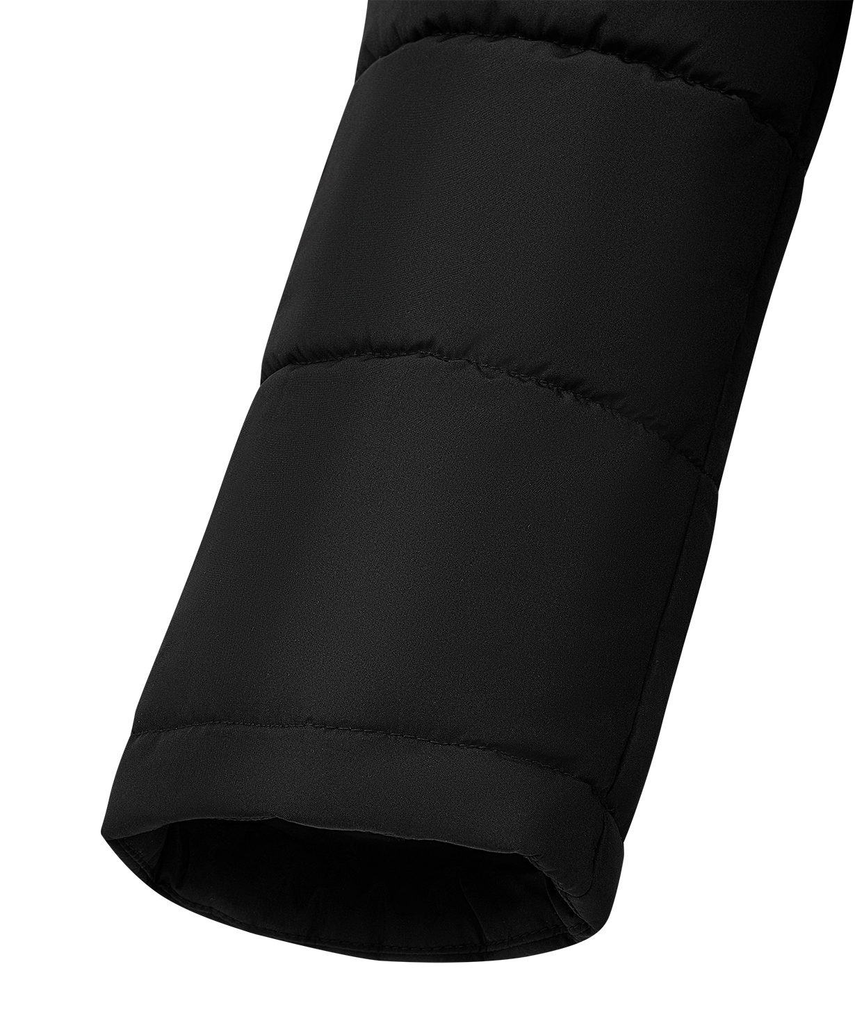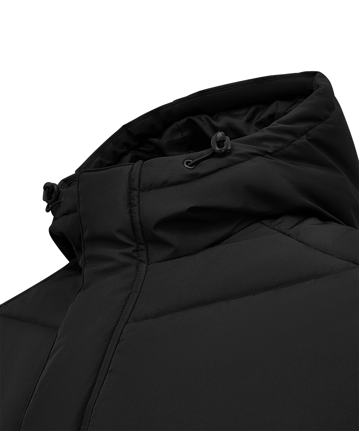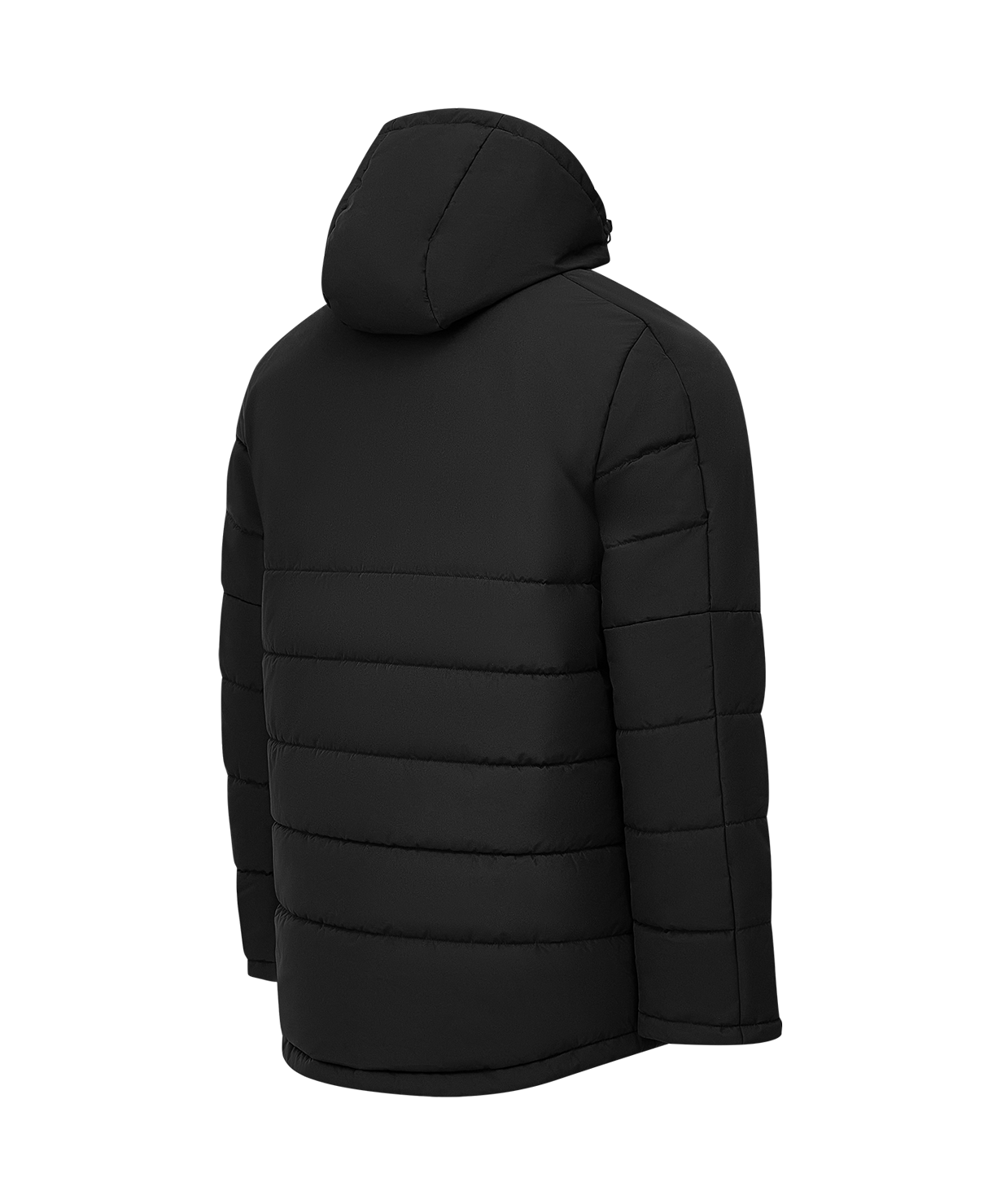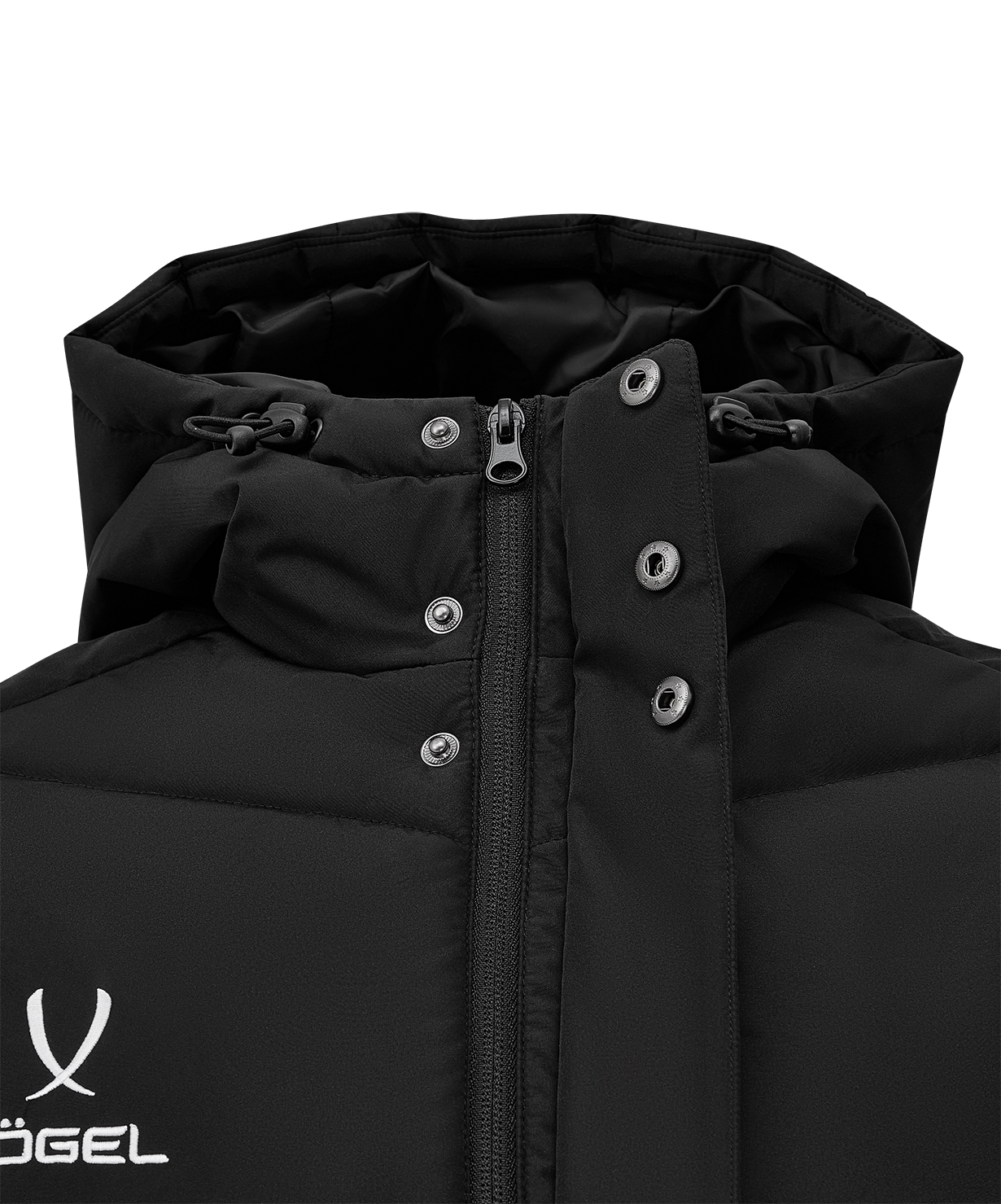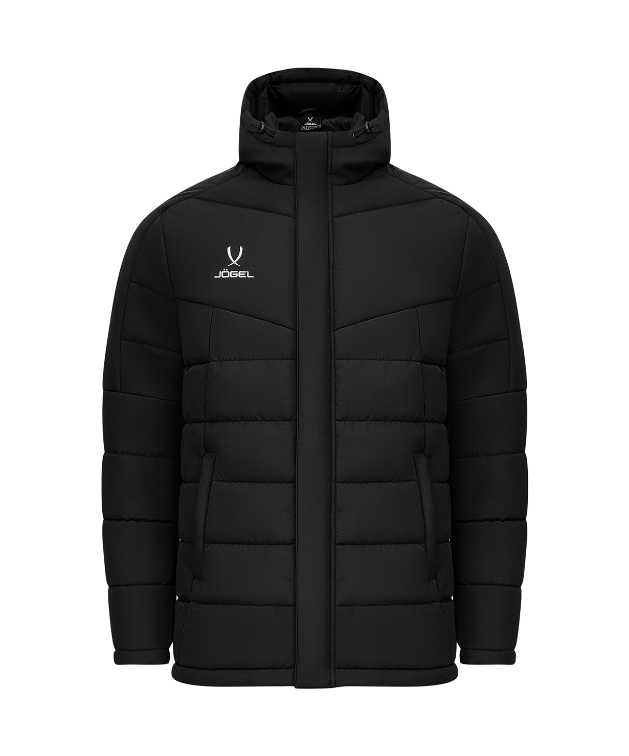 Куртка утепленная Jögel CAMP 2 PerFormPROOF Padded Jacket – удобная модель средней длины. Материал верха с влагоотталкивающей пропиткой Ball Effect имеет высокую плотность переплетения, что не только защищает от промокания, но и обеспечивает отличную износостойкость. Трехслойный синтетический утеплитель с разной плотностью (180 г на теле, 150 г на рукавах и 120 г на капюшоне) эффективно сохраняет тепло, при этом обладает малым весом и быстро отводит влагу. Модель дополнена функцией PerFormPROOF.\nPadded Jacket отлично подходит для носки при температуре до -15⁰ C (в зависимости от влажности и уровня активности), делая ее идеальным выбором для тренировок, прогулок или повседневного использования в прохладную погоду. Объемный капюшон с регулировкой и передняя молния с внешней ветрозащитной планкой на кнопках обеспечивают дополнительную защиту от ветра и холода. Боковые карманы на молниях и внутренний карман на молнии предлагают удобное хранение мелочей при активном образе жизни.\nPerFormPROOF - технология пропитки материалов Jögel, обеспечивающая спортсменам защиту от дождя и ветра во время плохих погодных условий.\nПреимущества:\nФункция PerFormPROOF;\nВодоотталкивающая пропитка Ball Effect;\nЭффективное сохранение тепла;\nДополнительная защита от ветра;\nКарманы на молнии.\nХарактеристики:\nСостав: основной материал: 100% полиэстер, подкладка: 100% полиэстер, утеплитель: 100% полиэстер\nРазмерный ряд: YS, YM, YL, XS, S, M, L, XL, XXL, XXXL\nЦвет: черный\nВид упаковки: пакет с клапан скотчем, картонной этикеткой и стикером\nСтрана производства: Китай