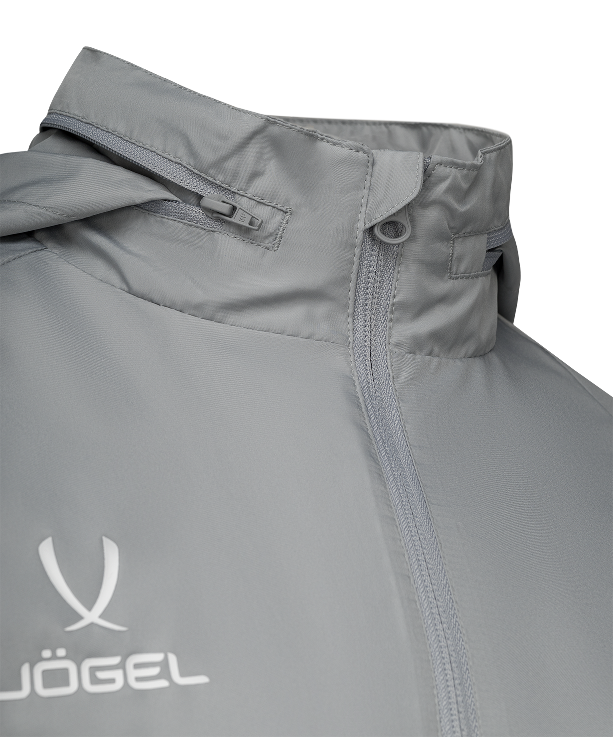 Детская ветрозащитная куртка Jögel CAMP 2 Rain Jacket – идеальное решение для занятий спортом при неблагоприятных погодных условиях. Легкая водонепроницаемая и непродуваемая ветровка свободного силуэта с передней реверсной молнией и ветрозащитной планкой имеет два прорезных кармана и удобный капюшон. Его можно полностью сложить в карман на воротнике, закрывающийся реверсной молнией.\nРукава реглан внизу дополнены эластичной окантовкой для лучшего прилегания к запястью. Дополнительная вентиляция при интенсивных занятиях спортом обеспечивается сетчатой подкладкой и технологичной отлетающей кокеткой.\nПреимущества:\nВодонепроницаемая и непродуваемая модель;\nКапюшон можно полностью сложить в карман на молнии;\nСетчатая подкладка;\nТехнологичная отлетающая кокетка;\nВетрозащитная планка;\nЭластичная окантовка внизу рукава;\nТекстильный принт на рукаве в дизайне коллекции CAMP 2.\nСостав: основной материал - 100% полиэстер, подкладка - 100% полиэстер\nРазмерный ряд: YS, YM, YL, YXL, XS\nЦвет: серый\nВид упаковки: зип пакет с картонной этикеткой и стикером\nСтрана производства: Китай
