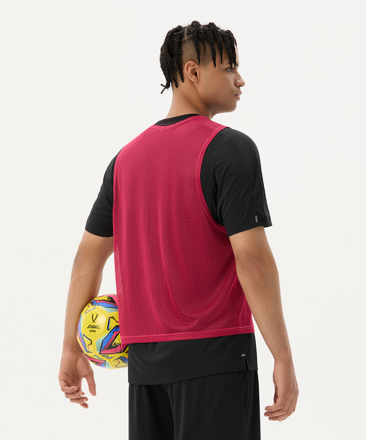 Манишка JÖGEL CAMP Bib – идеальное решение для экипировки команд. Модель выполнена из 100% полиэстера. Легкий и прочный материал устойчив к износу, сохраняет форму даже после многократных стирок, не выгорает и быстро сохнет. Свободный крой не сковывает движения. На груди расположен контрастный принт в виде узнаваемого логотипа бренда.\nЯркая, легкая спортивная манишка разработана специально для тренировок и игр. Благодаря насыщенным цветам спортсмен сможет быстро сориентироваться и найти игрока своей команды.\nПреимущества:\nЛегкий и прочный материал;\nНе выгорает на солнце и быстро сохнет;\nУстойчива к износу;\nНасыщенный цвет.\nХарактеристики:\nСостав: 100% полиэстер\nЦвет: малиновый\nРазмер: YM, S, L\nТип упаковки: пакет зип-лок\nПроизводство: Китай