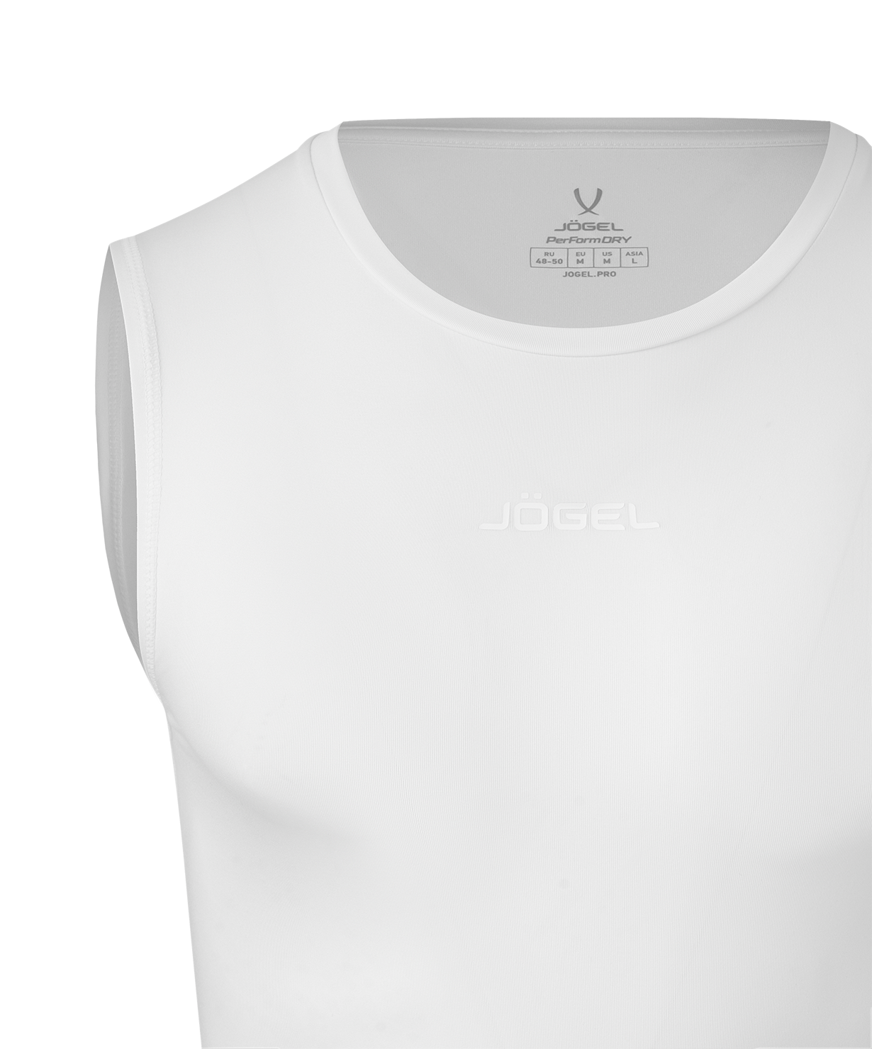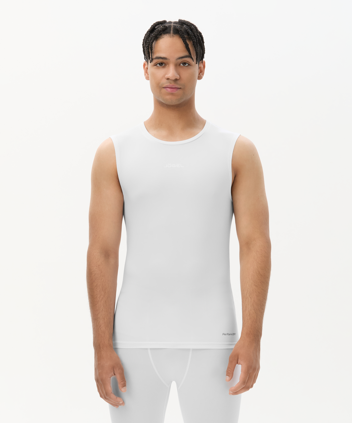 Спортивная майка первого слоя без рукавов идеально подходит под игровые баскетбольные майки. Модель облегающего кроя, придающего легкую компрессию, изготовлена из качественной ткани (волокна полиэстера 90% и спандекса 10%) с технологией PerFormDRY. Состав материала обеспечивает необходимую эластичность, позволяя возвращать первоначальную форму при растяжении.\nПолная свобода движений благодаря использованию технологии плоского шва: все швы растягиваются вместе с материалом, не давят и не натирают.\nЛоготип бренда расположен по центру груди и сверху на спине. Футболка упакована в удобный пакет многоразового использования с клапаном-застежкой.\nPerFormDRY - технология обработки ткани, которая помогает спортсменам оставаться сухими и чувствовать себя комфортно при интенсивных нагрузках.\nПреимущества:\nАнатомический крой;\nЭффективное отведение влаги от поверхности тела на наружный слой;\nКомпрессия - снижение усталости, поддержка мышц;\nТехнология обработки ткани PerFormDRY.\nХарактеристики:\nСостав: 90% полиэстер, 10% спандекс\nЦвет: белый\nРазмер: S, M, L, XL, XXL, XXXL\nТип упаковки: пакет зип-лок\nПроизводство: Китай