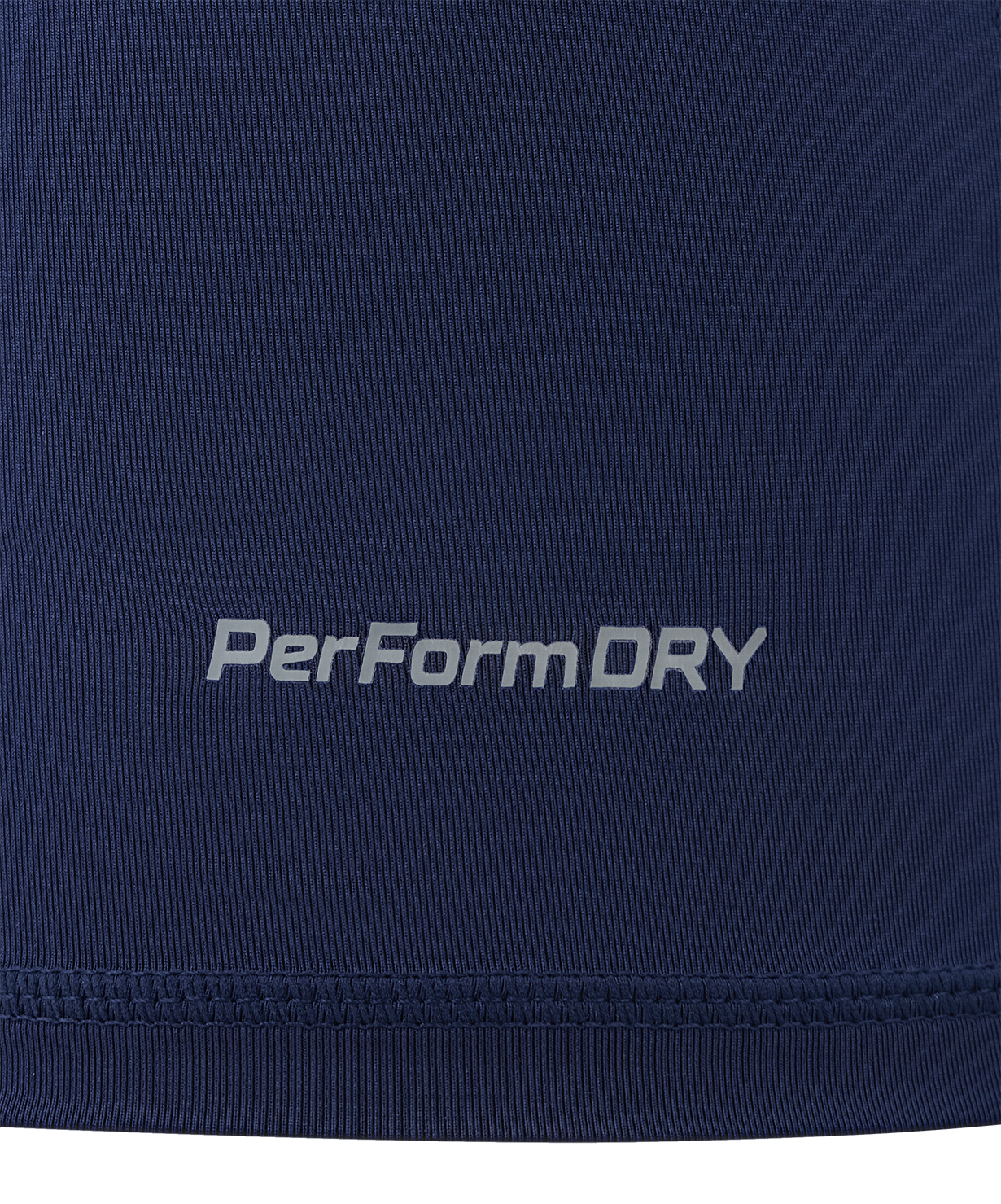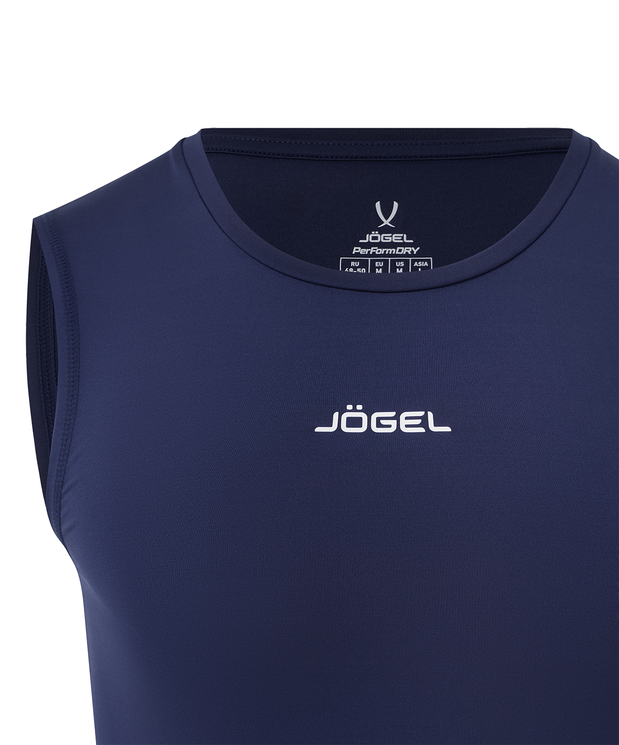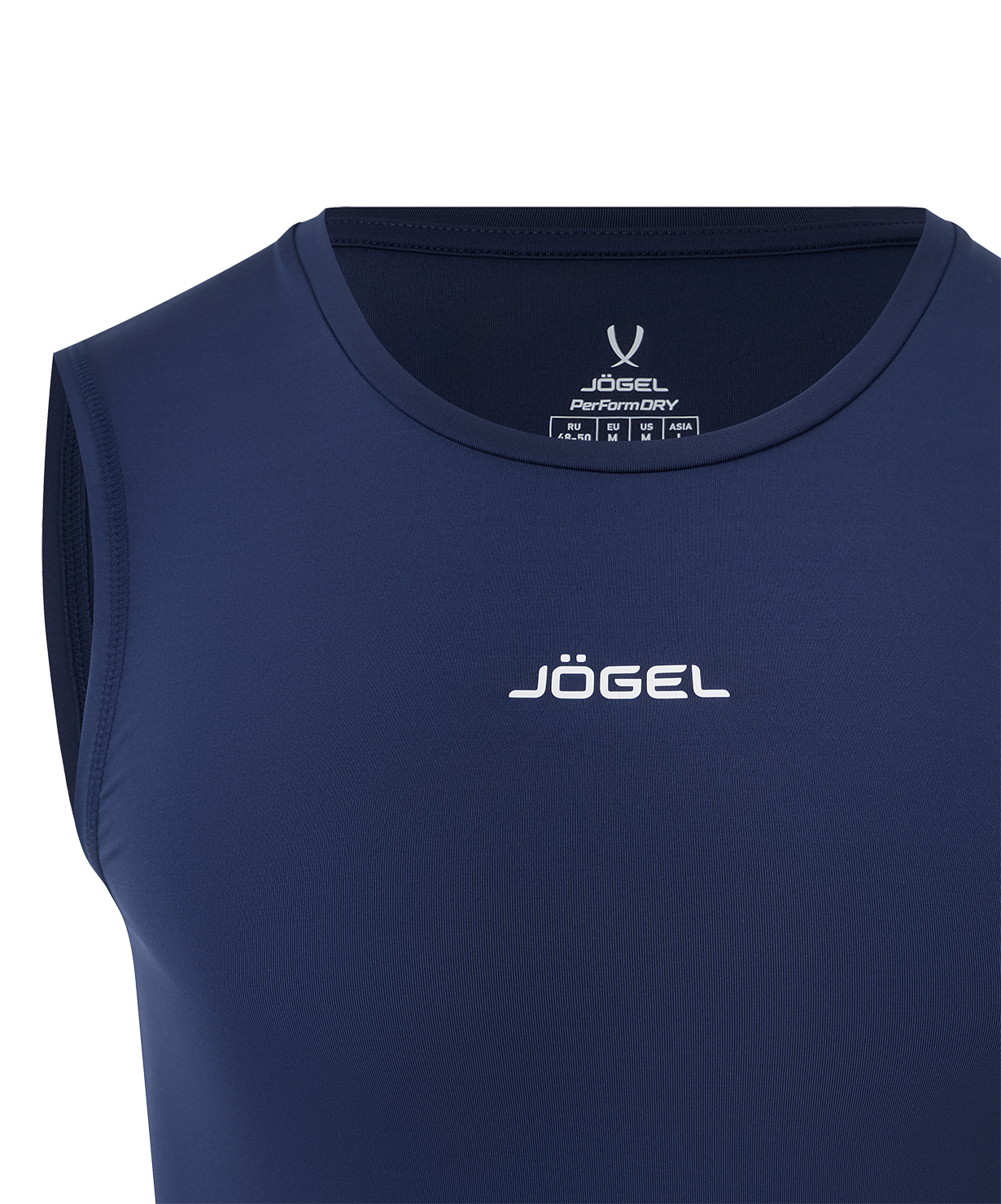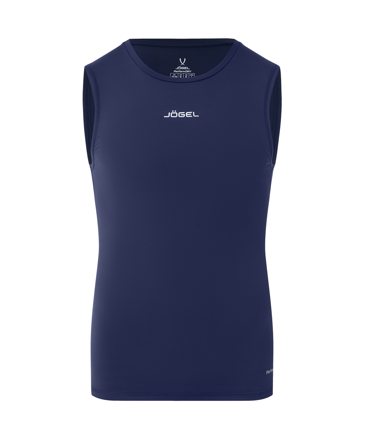 Спортивная майка первого слоя без рукавов идеально подходит под игровые баскетбольные майки. Модель облегающего кроя, придающего легкую компрессию, изготовлена из качественной ткани (волокна полиэстера 90% и спандекса 10%) с технологией PerFormDRY. Состав материала обеспечивает необходимую эластичность, позволяя возвращать первоначальную форму при растяжении.\nПолная свобода движений благодаря использованию технологии плоского шва: все швы растягиваются вместе с материалом, не давят и не натирают.\nЛоготип бренда расположен по центру груди и сверху на спине. Футболка упакована в удобный пакет многоразового использования с клапаном-застежкой.\nPerFormDRY - технология обработки ткани, которая помогает спортсменам оставаться сухими и чувствовать себя комфортно при интенсивных нагрузках.\nПреимущества:\nАнатомический крой;\nЭффективное отведение влаги от поверхности тела на наружный слой;\nКомпрессия - снижение усталости, поддержка мышц;\nТехнология обработки ткани PerFormDRY.\nХарактеристики:\nСостав: 90% полиэстер, 10% спандекс\nЦвет: темно-синий\nРазмер: S, M, L, XL, XXL, XXXL\nТип упаковки: пакет зип-лок\nПроизводство: Китай