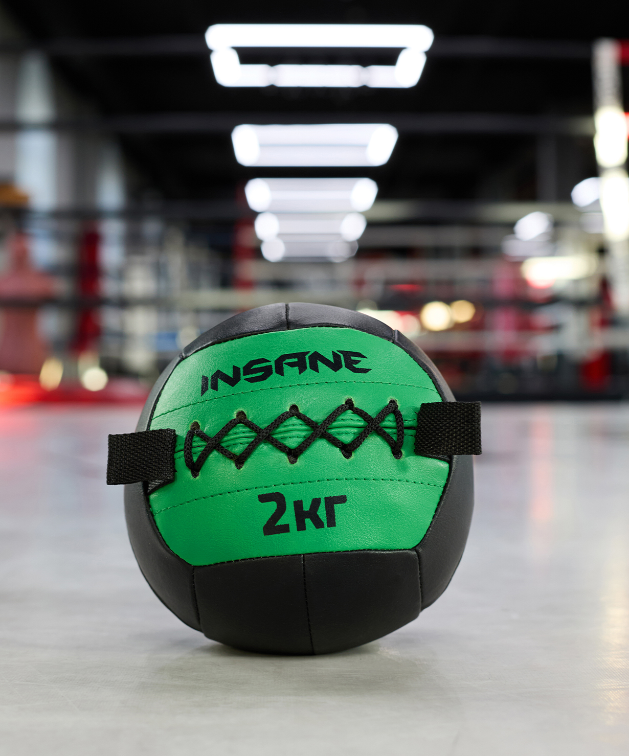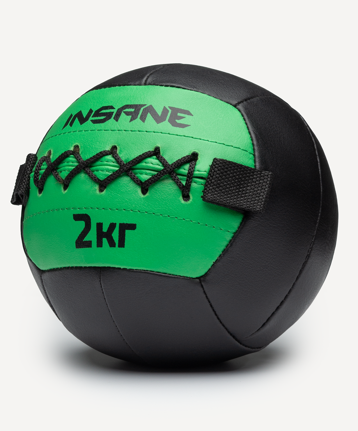 Медбол бренда INSANE – спортивный снаряд, который будет актуален для атлетов любого уровня подготовки. Он применяется для тренировки силы и координации, а также для выполнения упражнений, направленных на развитие баланса и гибкости.\nМедбол INSANE IN24-WB100 изготовлен из качественных материалов. Верхний слой сделан из износостойкого полиуретана, который не деформируется при ударах и падениях. Поверхность не скользит в руках и позволяет использовать снаряд даже во время высокоинтенсивных нагрузок. Для большей надежности предусмотрен слой из полиэтилена, который закрывает промежуточную прослойку из ваты. Вата позволяет медболу сохранять свою форму и быстро возвращаться в первоначальное состояние после деформации. Внутреннее наполнение состоит из металлической крошки, которая не пылит и не высыпается сквозь слои материалов. Долговечность снаряда обеспечивают прочные двойные швы из нейлоновых нитей. Для подъема и перемещения предусмотрены удобные ручки в виде двух петель.\nМедицинбол позволяет заменить различный спортинвентарь: занятия с данным мячом помогают улучшить общую выносливость как у взрослого, так и подростка, укрепить мышцы рук и спины, выработать быструю реакцию. Упражнения с набивным мячом положительно влияют на всю опорно-двигательную систему. Вес снаряда необходимо подбирать исходя из собственных физических возможностей и рекомендаций тренера.\nМедбол выполнен в ярком дизайне, каждый вес имеет собственную расцветку и диаметр, поэтому в коллекции легко найти нужный снаряд.\nВнимание! Данный медицинбол не предназначен для регулярных бросков и ударов об пол.\nПреимущества:\nУдобные ручки-петли для подъема и перемещения;\nНе деформируется при ударах и падениях;\nНескользящая поверхность;\nМногослойная структура;\nНаполнитель из долговечной металлической крошки;\nПрочные швы;\nЯркий дизайн.\nХарактеристики:\nЦвет: черный/зеленый\nВес, кг: 2\nВнешний материал: полиуретан\nВнутренний материал: полиэтилен\nНаполнитель: металлический песок, вата\nДиаметр, см: 18\nПроизводство: Китай