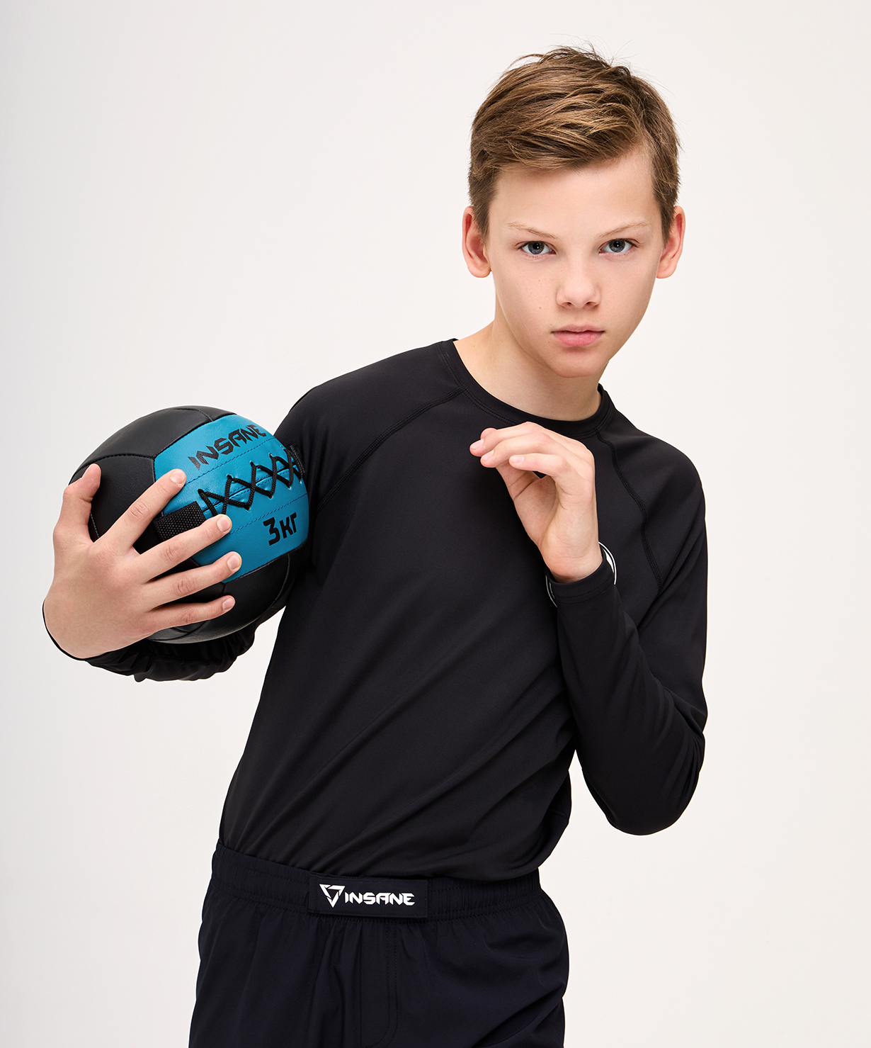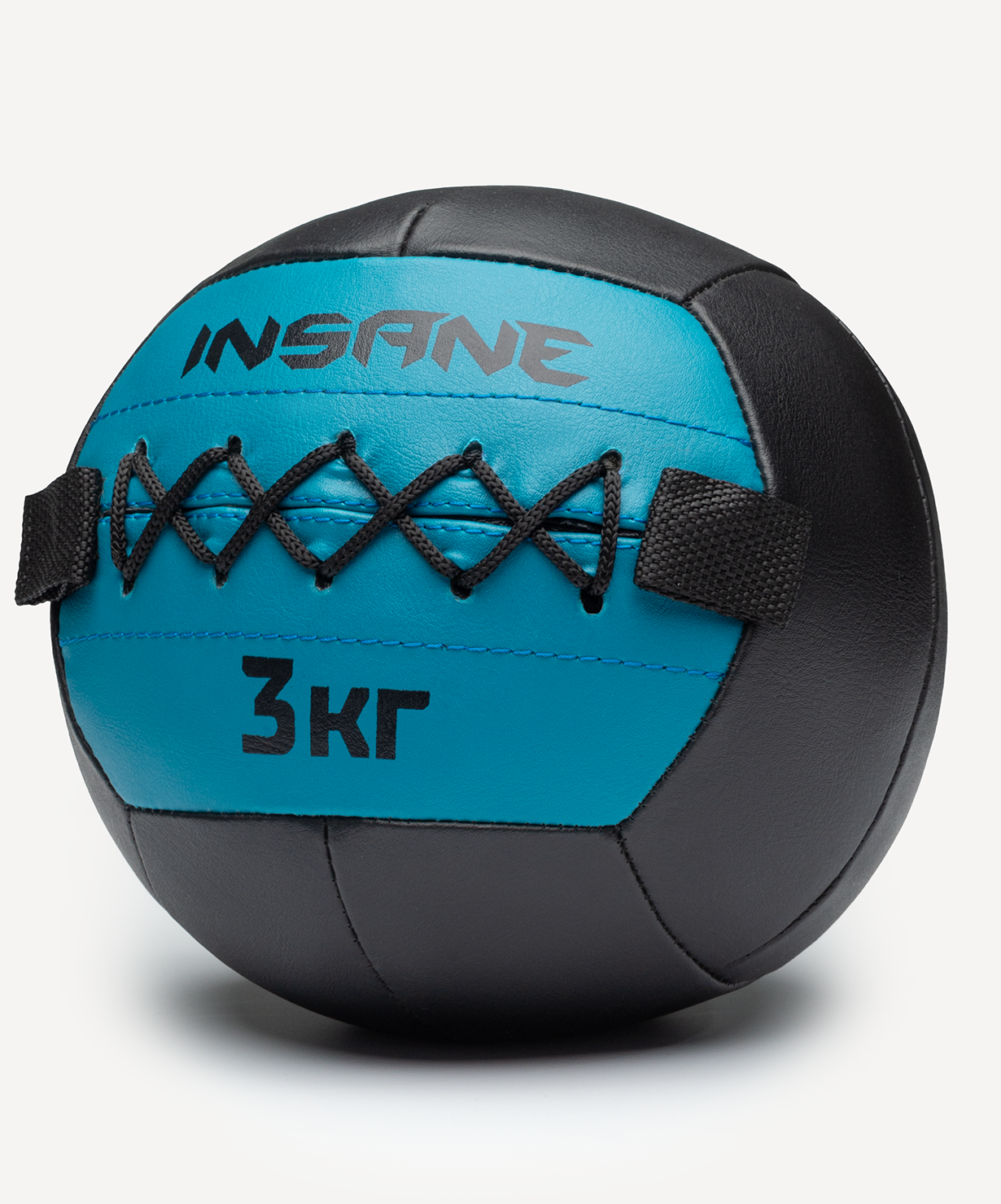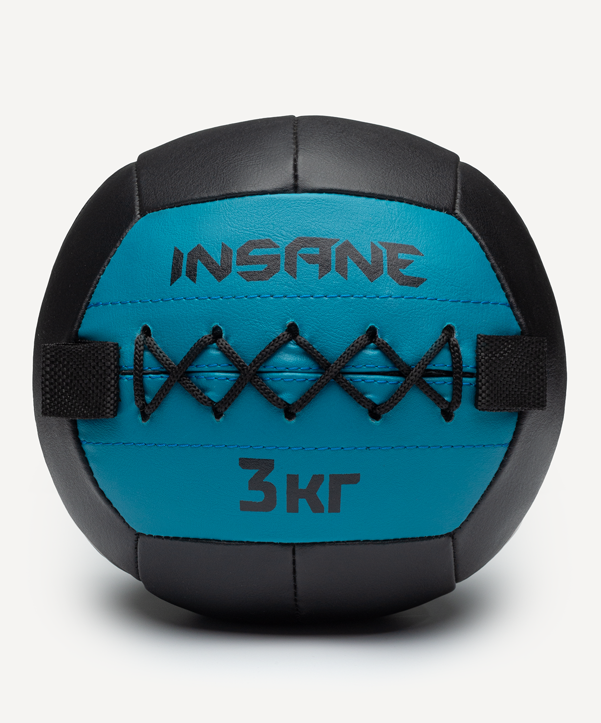 Медбол бренда INSANE – спортивный снаряд, который будет актуален для атлетов любого уровня подготовки. Он применяется для тренировки силы и координации, а также для выполнения упражнений, направленных на развитие баланса и гибкости.\nМедбол INSANE IN24-WB100 изготовлен из качественных материалов. Верхний слой сделан из износостойкого полиуретана, который не деформируется при ударах и падениях. Поверхность не скользит в руках и позволяет использовать снаряд даже во время высокоинтенсивных нагрузок. Для большей надежности предусмотрен слой из полиэтилена, который закрывает промежуточную прослойку из ваты. Вата позволяет медболу сохранять свою форму и быстро возвращаться в первоначальное состояние после деформации. Внутреннее наполнение состоит из металлической крошки, которая не пылит и не высыпается сквозь слои материалов. Долговечность снаряда обеспечивают прочные двойные швы из нейлоновых нитей. Для подъема и перемещения предусмотрены удобные ручки в виде двух петель.\nМедицинбол позволяет заменить различный спортинвентарь: занятия с данным мячом помогают улучшить общую выносливость как у взрослого, так и подростка, укрепить мышцы рук и спины, выработать быструю реакцию. Упражнения с набивным мячом положительно влияют на всю опорно-двигательную систему. Вес снаряда необходимо подбирать исходя из собственных физических возможностей и рекомендаций тренера.\nМедбол выполнен в ярком дизайне, каждый вес имеет собственную расцветку и диаметр, поэтому в коллекции легко найти нужный снаряд.\nВнимание! Данный медицинбол не предназначен для регулярных бросков и ударов об пол.\nПреимущества:\nУдобные ручки-петли для подъема и перемещения;\nНе деформируется при ударах и падениях;\nНескользящая поверхность;\nМногослойная структура;\nНаполнитель из долговечной металлической крошки;\nПрочные швы;\nЯркий дизайн.\nХарактеристики:\nЦвет: черный/голубой\nВес, кг: 3\nВнешний материал: полиуретан\nВнутренний материал: полиэтилен\nНаполнитель: металлический песок, вата\nДиаметр, см: 20\nПроизводство: Китай