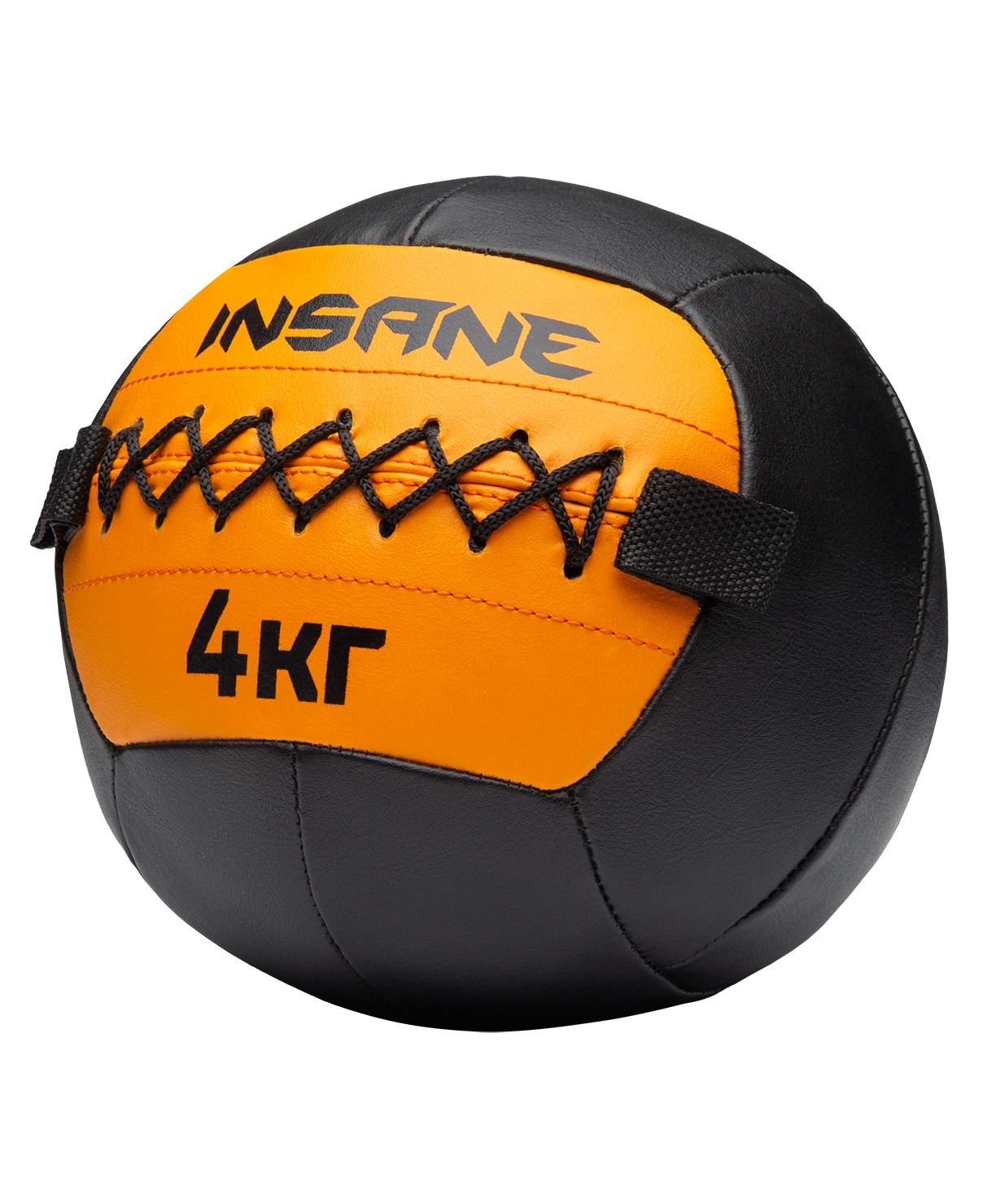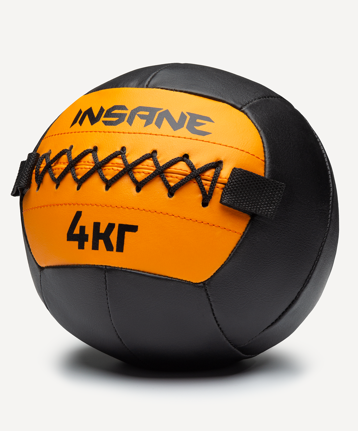 Медбол бренда INSANE – спортивный снаряд, который будет актуален для атлетов любого уровня подготовки. Он применяется для тренировки силы и координации, а также для выполнения упражнений, направленных на развитие баланса и гибкости.\nМедбол INSANE IN24-WB100 изготовлен из качественных материалов. Верхний слой сделан из износостойкого полиуретана, который не деформируется при ударах и падениях. Поверхность не скользит в руках и позволяет использовать снаряд даже во время высокоинтенсивных нагрузок. Для большей надежности предусмотрен слой из полиэтилена, который закрывает промежуточную прослойку из ваты. Вата позволяет медболу сохранять свою форму и быстро возвращаться в первоначальное состояние после деформации. Внутреннее наполнение состоит из металлической крошки, которая не пылит и не высыпается сквозь слои материалов. Долговечность снаряда обеспечивают прочные двойные швы из нейлоновых нитей. Для подъема и перемещения предусмотрены удобные ручки в виде двух петель.\nМедицинбол позволяет заменить различный спортинвентарь: занятия с данным мячом помогают улучшить общую выносливость как у взрослого, так и подростка, укрепить мышцы рук и спины, выработать быструю реакцию. Упражнения с набивным мячом положительно влияют на всю опорно-двигательную систему. Вес снаряда необходимо подбирать исходя из собственных физических возможностей и рекомендаций тренера.\nМедбол выполнен в ярком дизайне, каждый вес имеет собственную расцветку и диаметр, поэтому в коллекции легко найти нужный снаряд.\nВнимание! Данный медицинбол не предназначен для регулярных бросков и ударов об пол.\nПреимущества:\nУдобные ручки-петли для подъема и перемещения;\nНе деформируется при ударах и падениях;\nНескользящая поверхность;\nМногослойная структура;\nНаполнитель из долговечной металлической крошки;\nПрочные швы;\nЯркий дизайн.\nХарактеристики:\nЦвет: черный/оранжевый\nВес, кг: 4\nВнешний материал: полиуретан\nВнутренний материал: полиэтилен\nНаполнитель: металлический песок, вата\nДиаметр, см: 22\nПроизводство: Китай