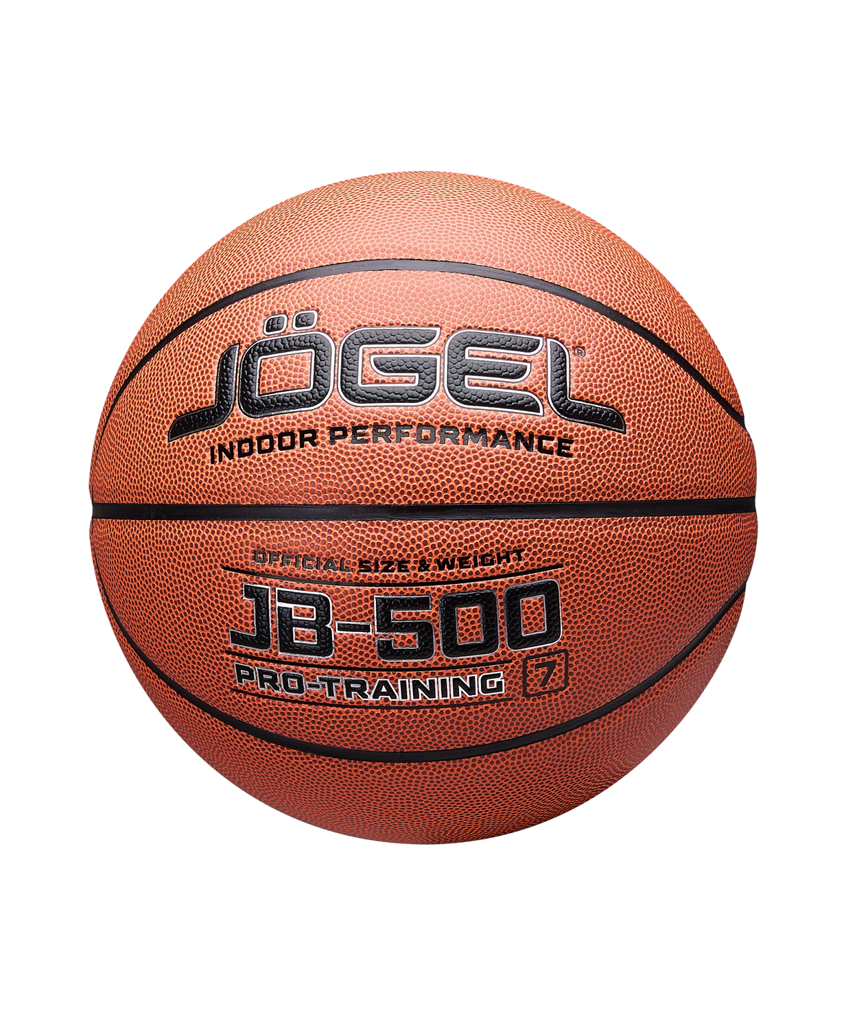 Уровень: Тренировочно-игровой мяч\nКатегория: INDOOR PERFOMANCE\nJögel JB-500 №7 – это отличный баскетбольный мяч из серии PRO TRAINING, прекрасный пример сочетания технологичности и комфорта. Материал поверхности мяча обновили, и теперь это еще более высококачественная синтетическая кожа (полиуретан) с отличными показателями «цепкости». Благодаря технологии DeepChannel (глубокие каналы), используемой при производстве мячей Jögel, достигается лучший контроля мяча во время броска и дриблинга. Размер №7 предназначается для мужчин и юношей от 17 лет, официальный размер для соревнований мужских команд. Данный мяч рекомендован для тренировок команд среднего и высокого уровня, а также соревнований любительских и средних команд. Официальный размер и вес FIBA.\nВнимание: мяч поставляется в спущенном виде. Рекомендуем приобрести насос и иглу для накачивания.\nХарактеристики:\nРекомендованные покрытия: паркет\nМатериал поверхности: синтетическая кожа (полиуретан)\nМатериал камеры: бутил\nМатериал обмотки камеры: нейлон\nТип соединения панелей: клееный\nКоличество панелей: 8\nРазмер: 7\nВес, гр: 567-650\nДлина окружности, см: 75-78\nРекомендованное давление: 0.5-0.6 бар\nМяч поставляется: спущенный\nОсновной цвет: коричневый\nДополнительный цвет: черный\nПроизводство: КНР
