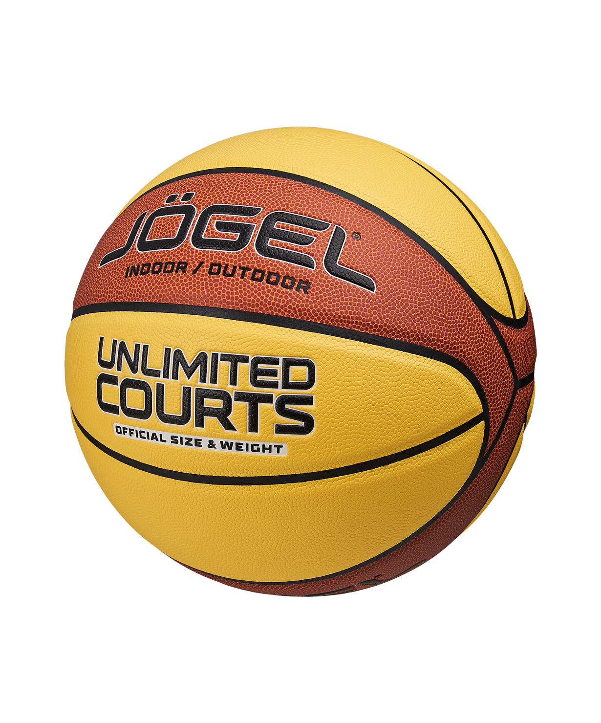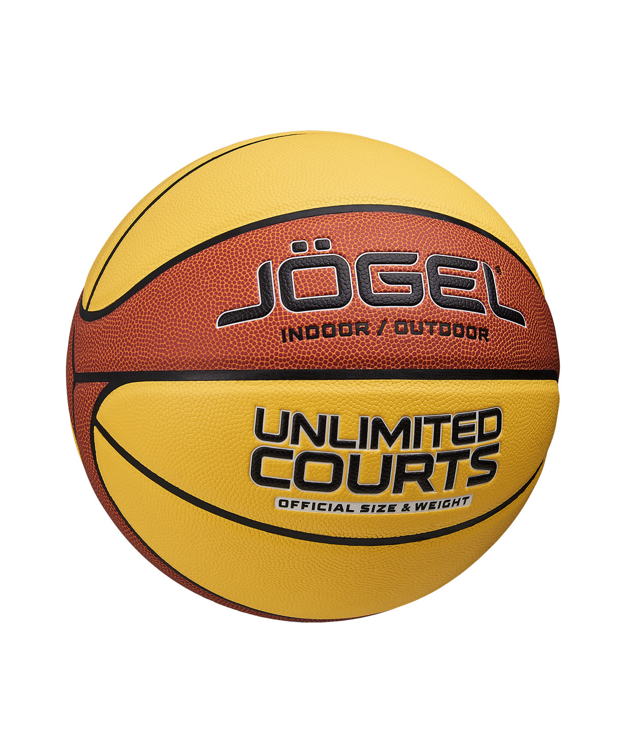 Уровень: Тренировочно-игровой мяч\nКатегория: INDOOR/OUTDOOR\nJögel UNLIMITED COURTS №7 – это прекрасный баскетбольный мяч из серии TRAINING с эксклюзивным 9-панельным дизайном. Поверхность мяча выполнена из композитного материала. Благодаря повышенной износостойкости снарядом можно играть практически на любой поверхности, как на улице, так и в зале. Уникальная 9-ти панельная конструкция мяча ярко выделяется своим дизайном. Размер №7 предназначается для мужчин и юношей от 17 лет, официальный размер для соревнований мужских команд.\nДанный мяч рекомендован для любительской игры, тренировок и соревнований любительских команд и команд среднего уровня. Официальный размер и вес FIBA.\nВнимание: мяч поставляется в спущенном виде. Рекомендуем приобрести насос и иглу для накачивания.\nХарактеристики:\nРекомендованные покрытия: паркет, резина, бетон, асфальт\nМатериал поверхности: композитный материал\nМатериал камеры: бутил\nМатериал обмотки камеры: полиэстер\nТип соединения панелей: клееный\nКоличество панелей: 9\nРазмер: 7\nВес: 567-650 гр.\nДлина окружности: 75-78 см\nРекомендованное давление: 0.5-0.6 бар\nМяч поставляется: спущенный\nОсновной цвет: желтый\nДополнительный цвет: коричневый\nПроизводство: КНР