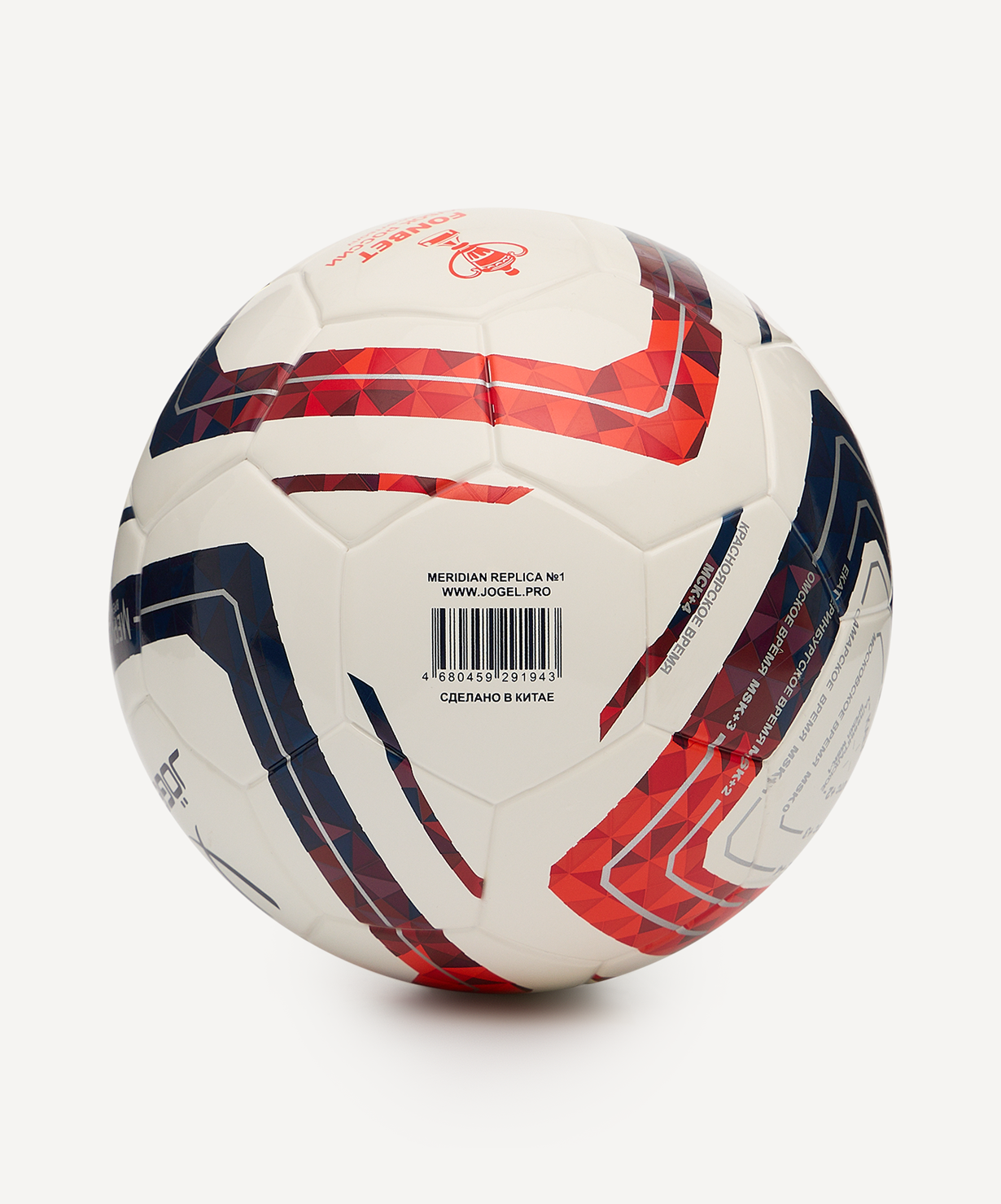 Категория: Сувенирный\nКоллекция: 2025/2027\nJÖGEL Meridian Mini Russian Cup — сувенирный мяч, уменьшенная версия официального мяча Кубка России по футболу Meridian Russian Cup. Дизайн разработан совместно с РФС и отражает футбольный дух нашей страны. Россия включает в себя одиннадцать часовых поясов, и на всем этом пространстве люди любят футбол. Одиннадцать часовых поясов - как одиннадцать игроков команды, где важен каждый регион, каждый город, каждый игрок и болельщик. От заката до рассвета продолжается игра, и мы продолжаем расти и стремимся к своим мечтам.\nMeridian Mini Russian Cup станет отличным решением для подарка.\nХарактеристики:\nМатериал поверхности: термополиуретан\nМатериал камеры: бутил\nТип соединения панелей: клееный\nКоличество подкладочных слоев: 2\nКоличество панелей: 32\nРазмер: 1\nВес, г: 210-230\nДлина окружности, см: 47-49\nМяч поставляется: накаченный\nОсновной цвет: белый\nДополнительный цвет: красный, черный\nПроизводство: КНР