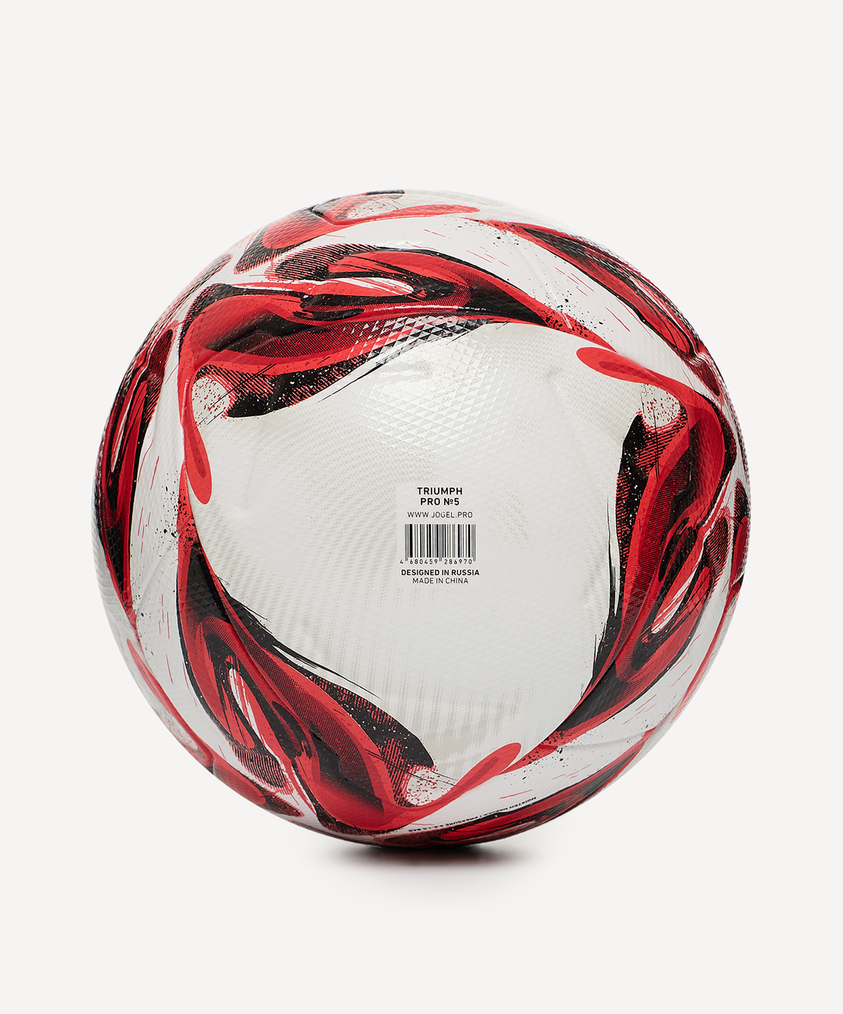 Категория: Матчевый\nКоллекция: 2025/2027\nЛинейка: Competition\nJögel Triumph Pro №5 - это профессиональный футбольный мяч для соревнований высокого уровня, который соответствует всем требованиям FIFA. Данная модель обладает отличными игровыми характеристиками и подойдет как для тренировок, так и для официальных игр команд. Выполнен по технологии термосклеивания THB Technology, благодаря чему обладает идеально круглой формой, герметичен и не пропускает влагу внутрь, а давление в мяче распределяется равномерно. Сочетает в себе оригинальные технические решения в виде 8 панельной конструкции мяча и красочный дизайн символизирующий страсть и любовь к футболу.\nРекомендован для тренировок и соревнований профессиональных команд. Специально разработанная конструкция мяча из 8 оригинальных панелей. Официальный размер и вес FIFA.\nВнимание: Мяч поставляется с завода-изготовителя в накачанном виде. Не рекомендуется полностью спускать данные мячи, чтобы не нарушить целостность панелей. Необычная модель мяча с ярким дизайном, подготовленная специально для зимнего сезона.\nХарактеристики:\nРекомендованные покрытия: натуральный газон, синтетическая трава, резина, гаревые поля, паркет\nМатериал поверхности: 1.0 мм синтетическая кожа (полиуретан) + 3.5 мм подкладочный слой из пены\nМатериал камеры: бутил\nТип соединения панелей: термосшивка\nКоличество подкладочных слоев: 1\nКоличество панелей: 8\nРазмер: 5\nВес, г: 420-445\nДлина окружности, см: 68-70\nРекомендованное давление: 0.8-1.0 бар\nМяч поставляется: накаченный\nОсновной цвет: белый\nДополнительный цвет: красный, черный\nПроизводство: КНР