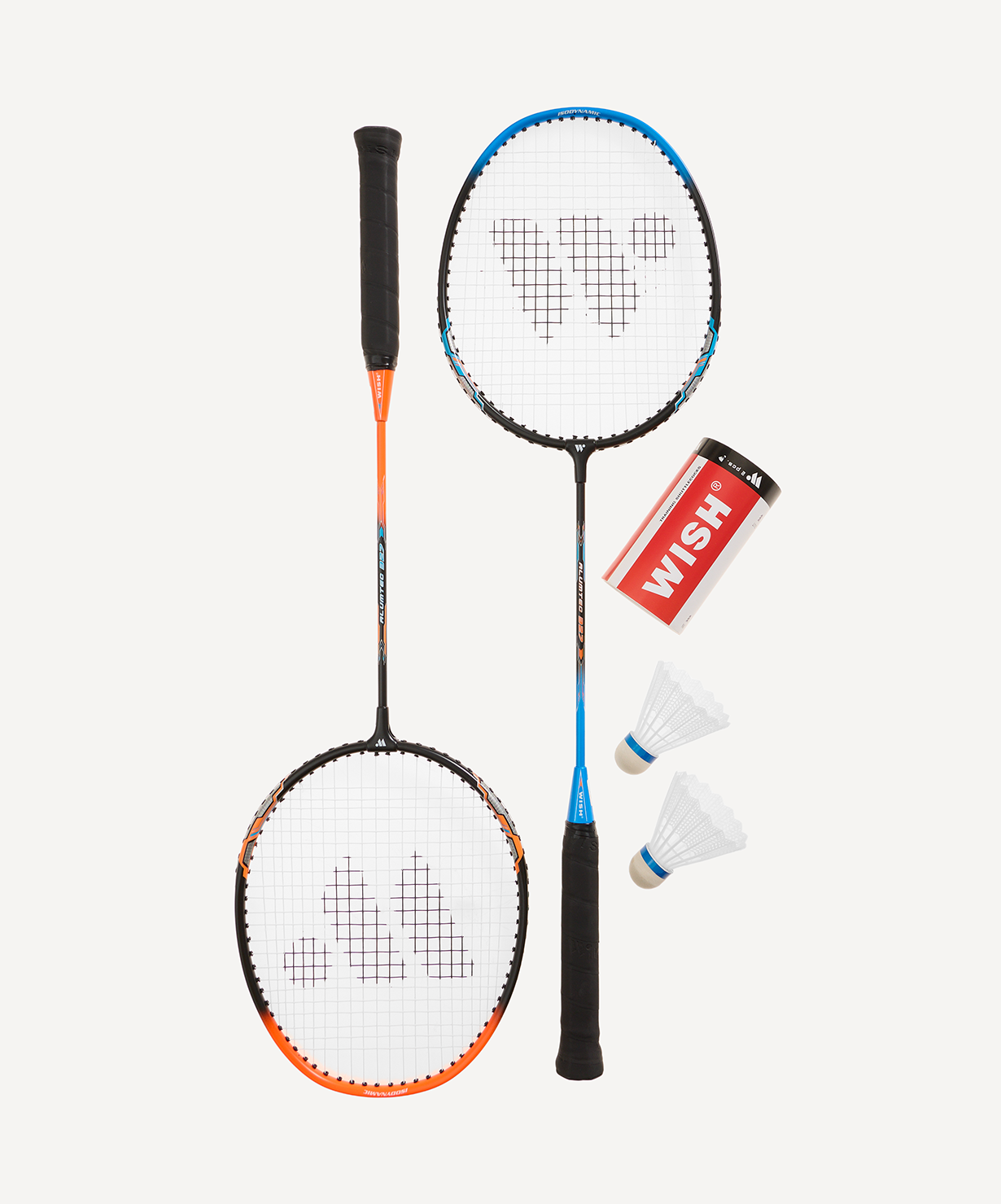 Набор ракеток для бадминтона WISH состоит из двух ракеток изометрической формы, двух пластиковых воланов и чехла из ПВХ для переноски и хранения. Набор был разработан для бадминтонистов-любителей, которым требуется максимально простая в игре и маневренная ракетка. Широкая алюминиевая рама обеспечивает уверенную и комфортную игру, а оптимальное для начинающих игроков натяжение струн позволяет выполнять сильные удары без лишних усилий. В комплекте к ракеткам для бадминтона идет полноразмерный чехол с логотипом бренда.\nПреимущества:\nОптимальное натяжение струн;\nДолгий срок службы благодаря широкому ободу;\nВсе необходимое для игры в одном комплекте.