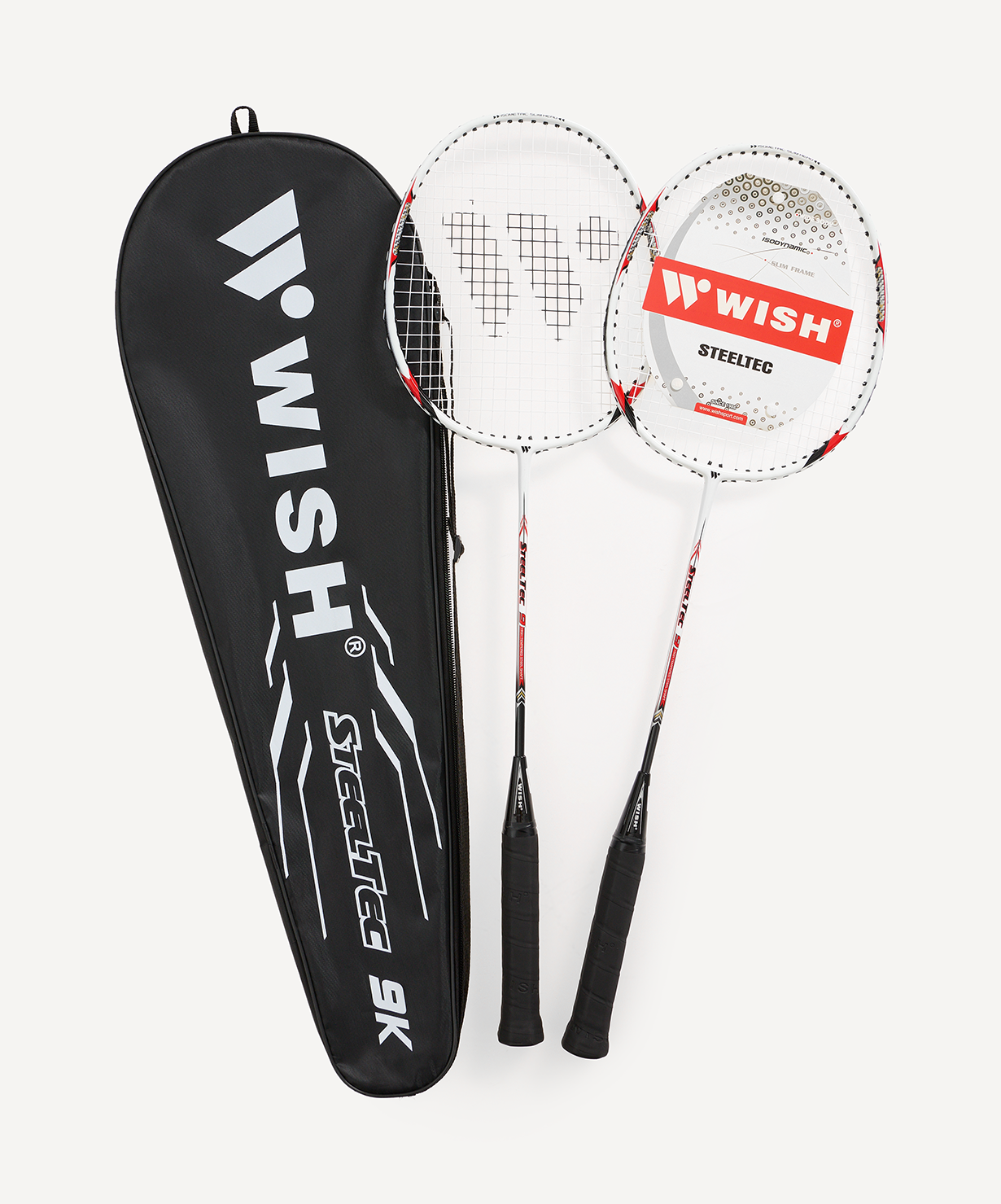 Набор ракеток для бадминтона WISH Steeltec 9 – обновленная версия бестселлера прошлых сезонов – комплекта Steeltec 216. Набор состоит из двух ракеток изометрической формы и чехла из ПВХ для переноски и хранения.\nSteeltec 9 был разработан для бадминтонистов-любителей, которым требуется максимально простая в игре и маневренная ракетка. Новинка 2026 представляет собой современную, более жесткую и надежную конструкцию с литым тройником. Широкая стальная рама в сочетании с новейшими технологиями виброгашения обеспечивает уверенную и комфортную игру, а оптимальное для начинающих игроков натяжение струн позволяет выполнять сильные удары без лишних усилий.\nВ комплекте к ракеткам для бадминтона идет полноразмерный чехол с логотипом бренда.\nПреимущества:\nМеньшее поглощение энергии волана при ударе;\nДолгий срок службы благодаря широкому ободу и цельному тройнику;\nПолноразмерный чехол;\nИдеально подходит новичкам и любителям.