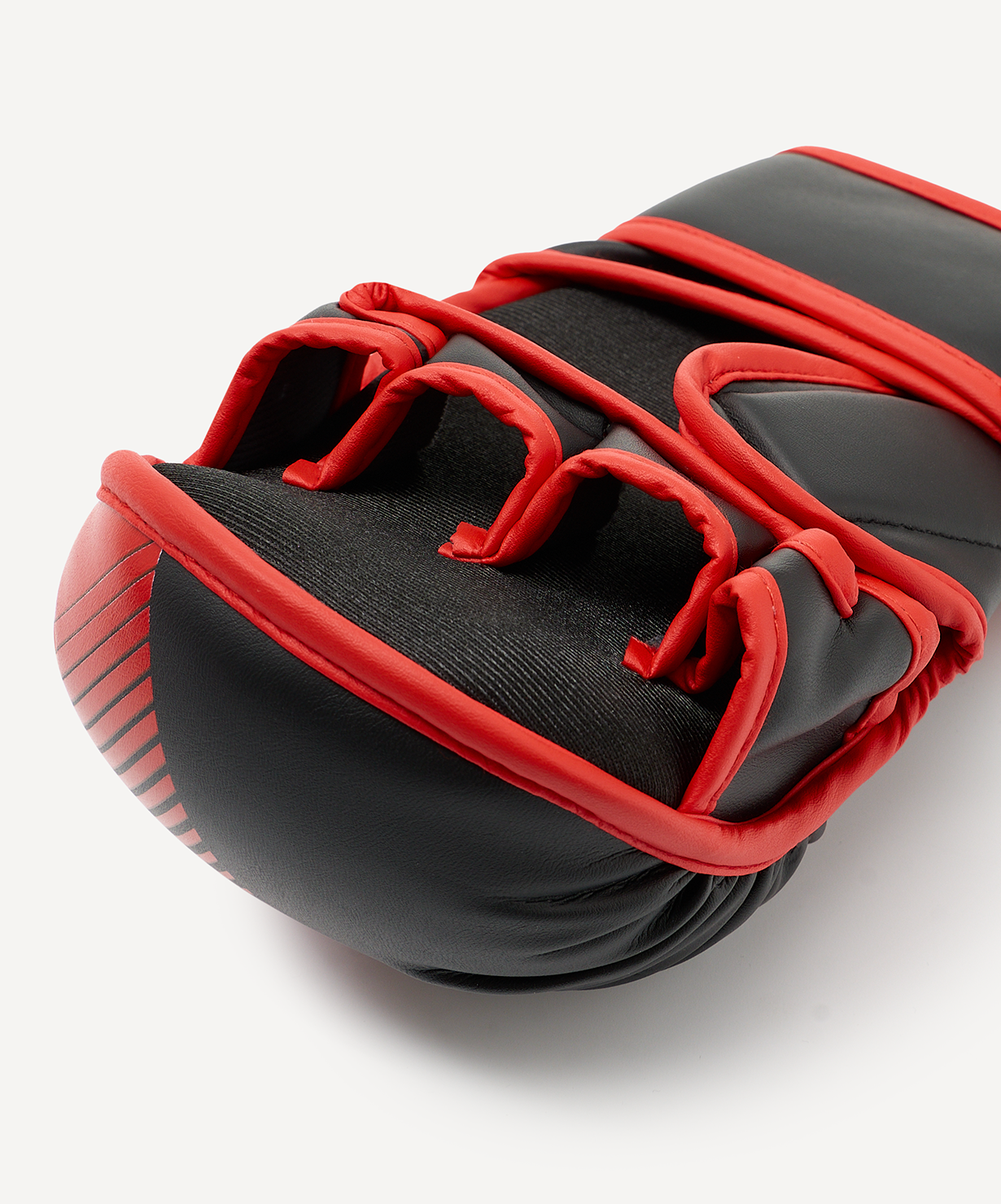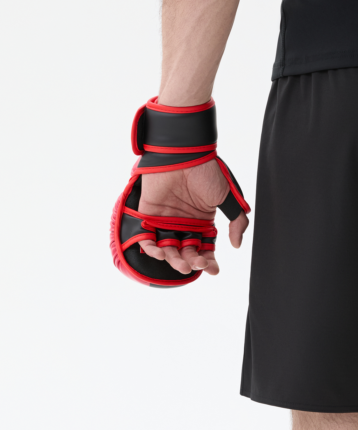 Перчатки имеют круглую изогнутую форму, которая естественным образом полностью повторяет форму суставов пальцев и кулака, снижая утомляемость и риск получения травм. HYBRID комфортно и плотно облегают руку, а открытая ладонь позволяет проводить захваты, броски и другие приемы как в стойке, так и в партере.