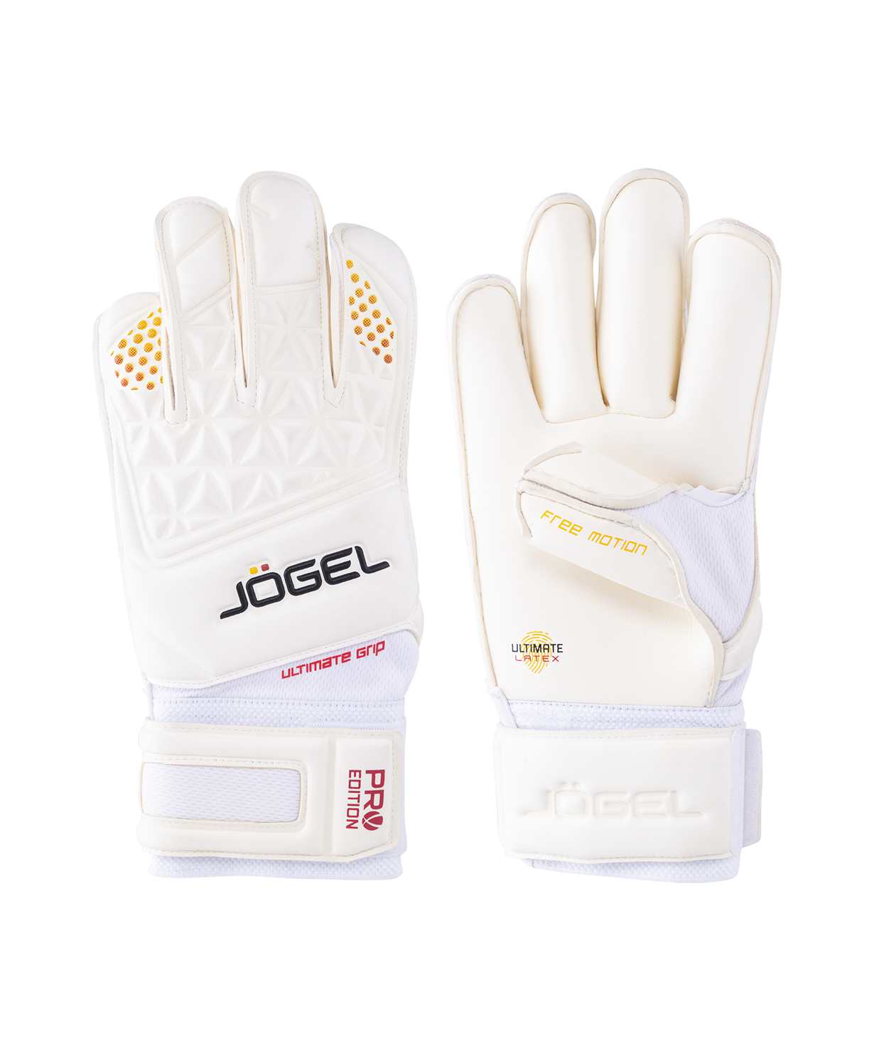 Уровень: Профессиональный\nКоллекция: 2020/2022\nВратарские перчатки Pro Edition Roll - это флагманские профессиональные всепогодные вратарские перчатки. Материал ладони - оригинальный немецкий латекс Ultimate толщиной 4 мм - обладает превосходными характеристиками цепкости и износостойкости для профессиональных игроков. Внутренняя подкладка из специальной пены толщиной 4 мм добавляет мягкости, внешняя сторона сделана из латекса Superior (толщина 3,5 мм) и имеет специальный 3D-рельеф для уверенной игры кулаками. Специальная технология конструкции перчаток Free Motion практически не сковывает движения пальцев, что позволяет получить максимально эффективный захват. Полностью латексная манжета на липучке надежно фиксирует кисть, а окно персонализации позволяет выделять ваши перчатки собственным именем или инициалами.\nFREE MOTION - специальная конструкция перчаток, с помощью которой перчатки практически не сковывают движения пальцев, что позволяет получить максимально эффективный захват мяча во время игры.\nХарактеристики:\nОсновной цвет: белый\nМатериал ладони: ultimate latex 4 мм\nМатериал тыльной стороны: superior latex 3.5 мм\nКрой: roll finger\nЗащита пальцев: нет\nРазмерный ряд: 6, 7, 8, 8,5, 9, 9,5, 10, 10,5, 11\nКомплектация: перчатки, фирменная сумка на молнии\nСтрана производства: Пакистан