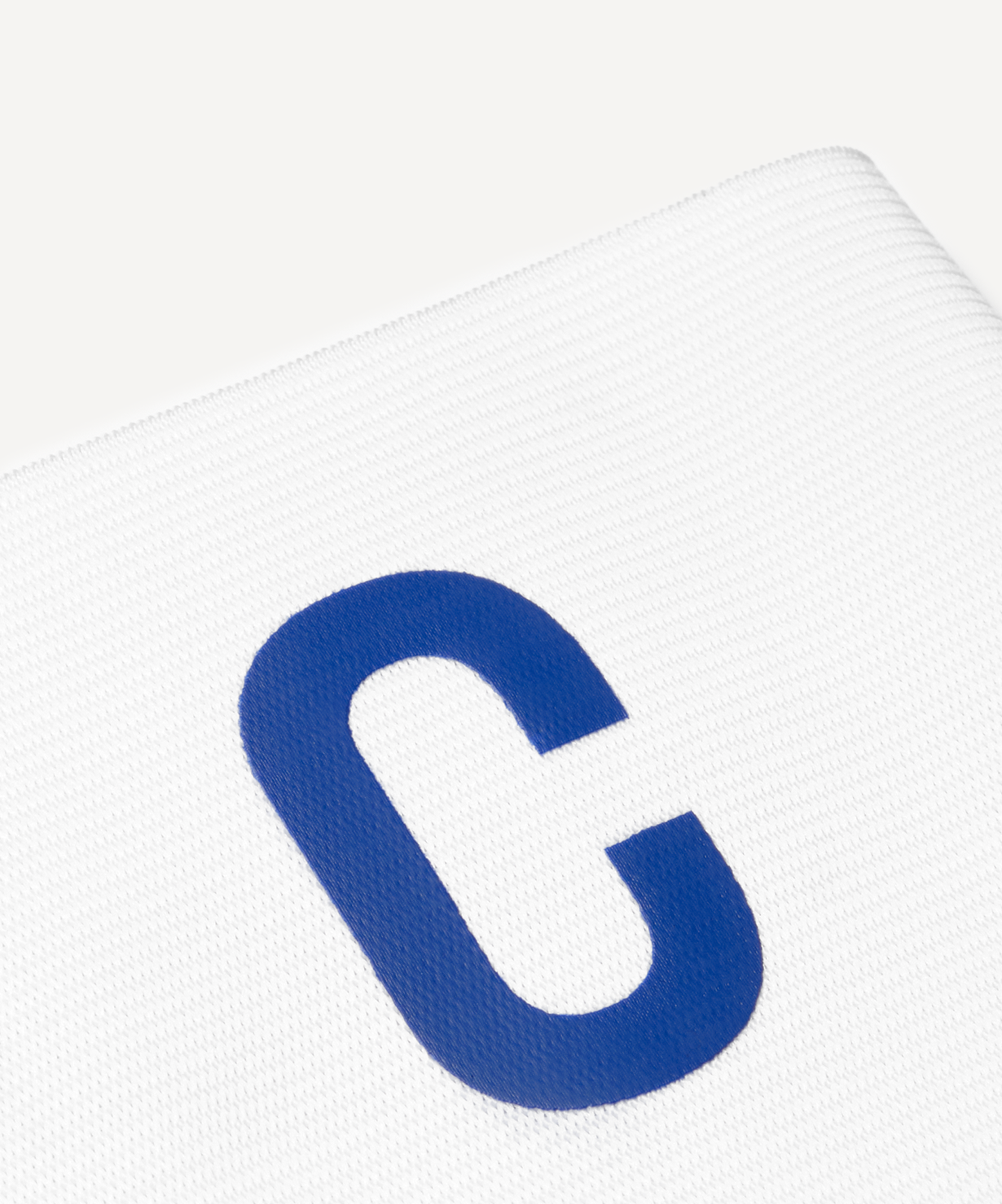 Капитанская повязка Jögel DIVISION Armband – незаменимый аксессуар капитана команды. Изделие выполнено из современного эластичного материала. Мы усовершенствовали повязку и дополнили ее более широкой и прочной резинкой, которая гарантирует надежную фиксацию на голове. Armband имеет универсальный размер, долговечная велкро-липучка позволяет быстро отрегулировать объем повязки.\nШирина аксессуара составляет 9 сантиметров.\nХарактеристики:\nМатериал: 70% полиэстер, 30% эластан\nЦвет: белый, синий\nШирина, см: 9\nДлина, см: 35\nВес, г: 15\nТип упаковки: картонная упаковка и прозрачный полиэтиленовый пакет\nСтрана производства: Китай