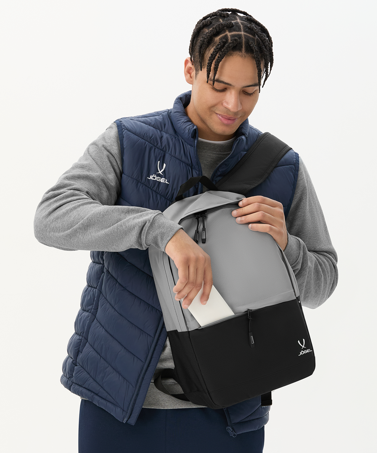 Рюкзак ESSENTIAL Backpack бренда Jögel – отличный вариант для повседневного использования, тренировок и путешествий. Благодаря материалу с влагоотталкивающей пропиткой содержимое спортивного рюкзака будет под надежной защитой даже при неблагоприятных погодных условиях. Мягкие лямки комфортны к телу и легко регулируются по длине. Модель оснащена просторным центральным отделением на молнии, внутри расположен дополнительный карман. ESSENTIAL Backpack представлен в 5 популярных оттенках, среди которых каждый сможет подобрать оптимальную расцветку под любой образ.\nПреимущества:\nБазовый рюкзак для повседневной носки;\nВлагоотталкивающая пропитка ткани;\nМягкие регулируемые лямки;\nПередний карман на молнии и дополнительный карман внутри;\nЛаконичный дизайн.\nХарактеристики:\nМатериал: 100% полиэстер\nГабариты, см: 45 х 29 х 14\nОбъем, л: 20\nТип упаковки: пакет\nПроизводство: Китай