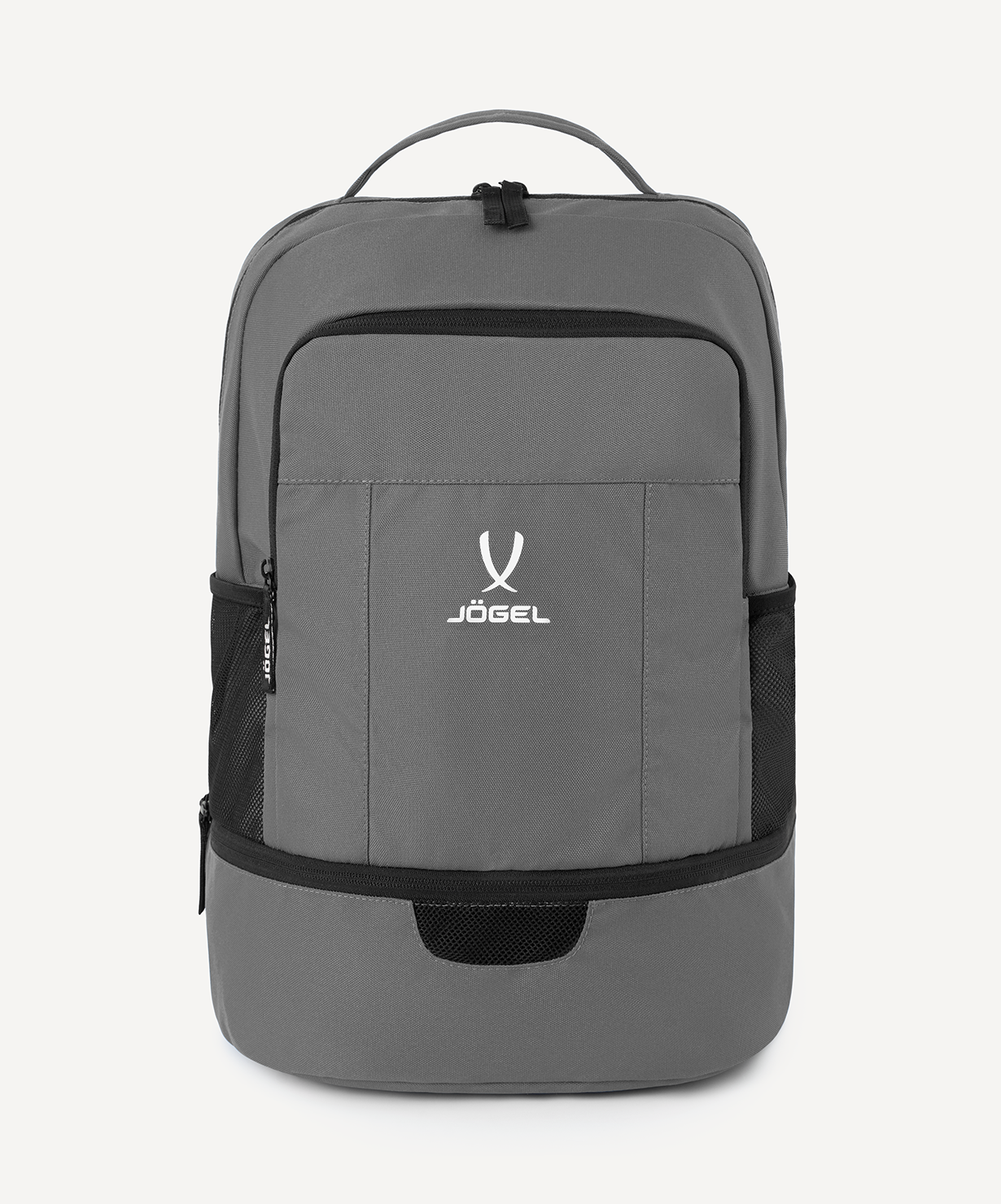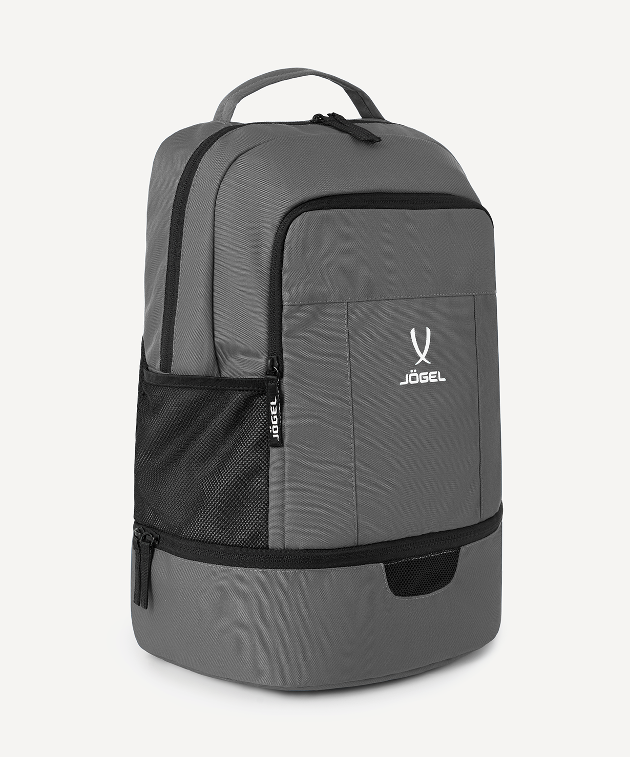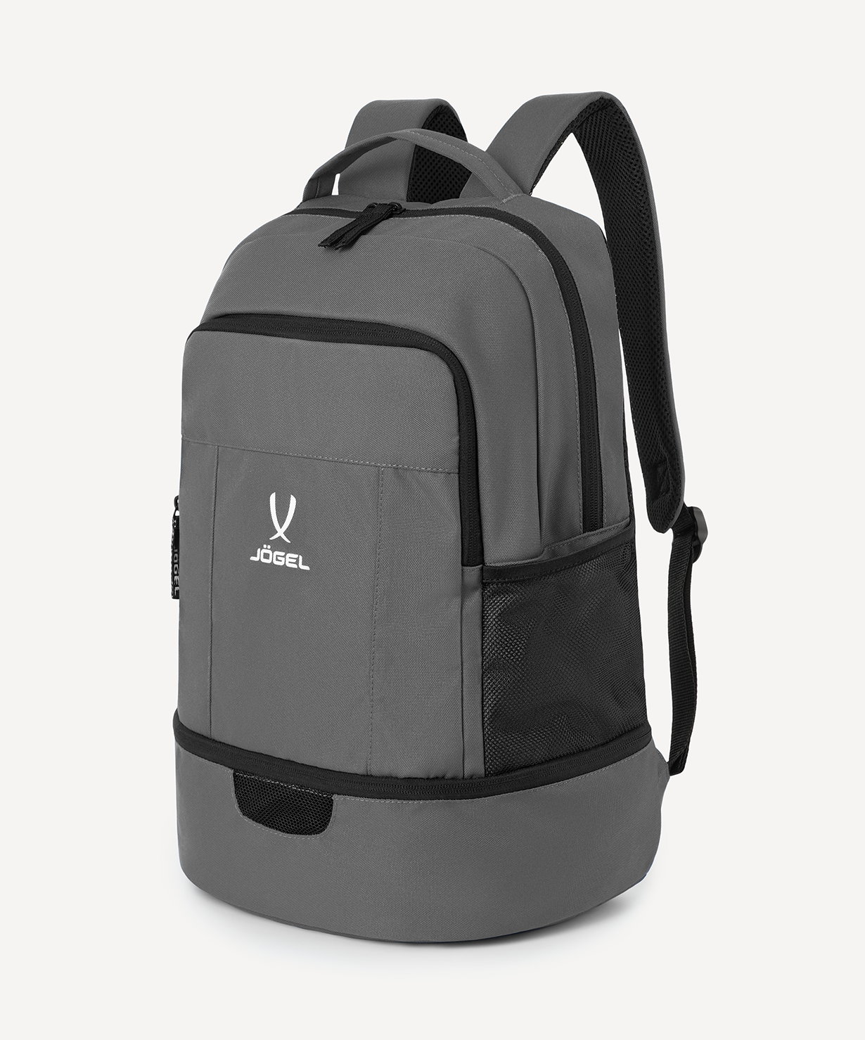 Рюкзак JÖGEL CAMP Double Bottom 2.0 – это идеальный выбор для активных людей, ценящих комфорт и функциональность в каждой детали.\nЛегкий и удобный спортивный рюкзак оснащен всем необходимым для повседневного использования и тренировок. Анатомическая спинка из сетки обеспечивает отличную вентиляцию и комфорт даже при длительном ношении. Мягкие регулируемые плечевые лямки позволяют подстроить посадку под индивидуальные особенности.\nВ модели предусмотрен фронтальный карман на молнии для быстрого доступа к мелочам, а также внутренний карман на молнии для ценных вещей. Два боковых сетчатых кармана отлично подходят для бутылок с водой.\nОсобое внимание заслуживает нижний отсек для обуви с сетчатой вставкой – он отделяет грязную или влажную обувь от остального содержимого рюкзака и обеспечивает необходимую вентиляцию.\nПреимущества:\nКомфортный и легкий рюкзак для спорта;\nАнатомическая спинка из сетки;\nМягкие регулируемые плечевые лямки;\nОтсек для обуви с сетчатой вставкой для вентиляции;\nДва сетчатых кармана для бутылок;\nФронтальный и внутренний карманы на молниях.\nХарактеристики:\nСостав: 100% полиэстер\nЦвет: темно-серый\nРазмер, см: 47 х 33 х 21\nОбъем, л: 30\nТип упаковки: пакет c клеевым краем\nПроизводство: Пакистан