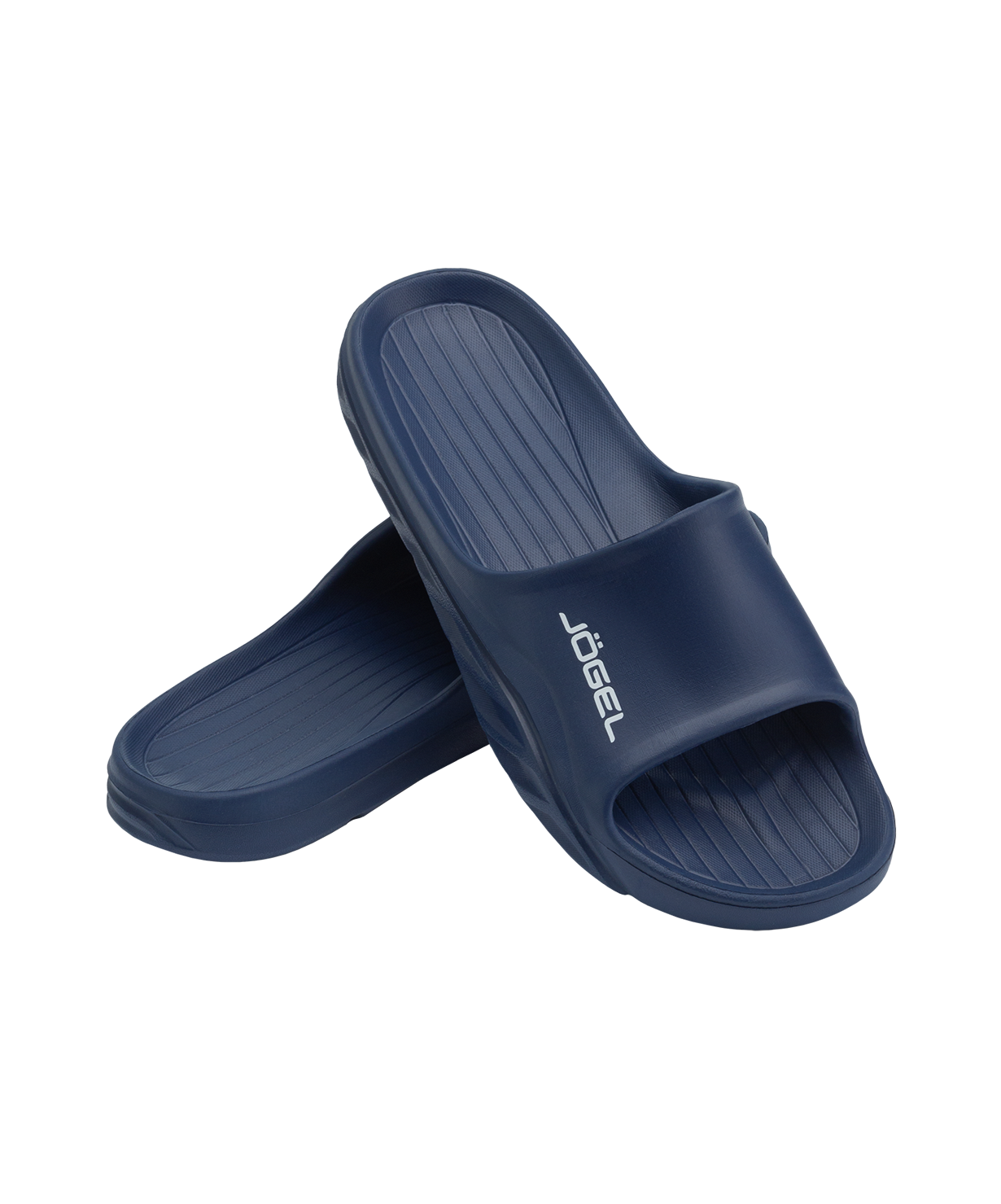 Комфортные и облегченные сланцы Jögel Shower Slides - ваш выбор для бассейна, раздевалки и душевой комнаты. Цельнолитая конструкция из мягкого материала ЭВА гарантирует малый вес и комфорт во время носки. За безопасность при ходьбе по влажным поверхностям отвечает подошва с протектором, обеспечивающая лучшее сцепление. Долговечные, быстросохнущие и удобные – мужские сланцы станут отличным дополнением к любой экипировке.\nПреимущества:\nЛегкие и удобные;\nИзготовлены из долговечного EVA;\nПодошва с протектором;\nСтильный дизайн.\nХарактеристики:\nМатериал верха: 100% этиленвинилацетат\nМатериал подошвы обуви: 100% этиленвинилацетат\nПолнота обуви: Е\nРазмерный ряд: 37-46 (RU)\nОсновной цвет: темно-синий\nДополнительные цвета: белый\nВес пары, г: 270\nТип упаковки: брендированная вешалка, ПП пакет на скотч клапане\nСтрана производства: Китай