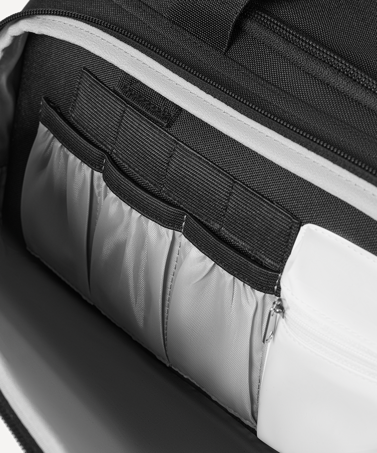 Медицинская сумка JÖGEL DIVISION Medical Bag – надежный помощник для медицинского персонала на спортивных объектах, обеспечивающий быстрый доступ к необходимому оборудованию на соревнованиях и тренировках.\nМодель изготовлена из высококачественного полиэстера, который отлично держит форму и выдерживает интенсивные нагрузки. Водоотталкивающая пропитка защищает содержимое от влаги, а специальные упоры на дне обеспечивают дополнительную защиту от грязи и воды.\nМножество карманов позволяет систематизировать медицинские принадлежности и инструменты. Мягкие перегородки внутри основного отделения легко переставляются, что дает возможность настроить внутреннее пространство под конкретные потребности.\nЭргономичные ручки обеспечивают комфортную переноску даже при полной загрузке сумки. Боковые сетчатые вставки создают дополнительную вентиляцию основного отделения, предотвращая образование конденсата.\nПреимущества:\nПрочный и долговечный материал;\nВодоотталкивающая пропитка;\nРегулировка внутреннего пространства перегородками;\nУдобные ручки;\nСетчатые вставки для вентиляции.\nХарактеристики:\nСостав: основной материал: 100% полиэстер, подкладка: 100% полиэстер\nЦвет: черный\nРазмер, см: 41 x 18 x 23\nТип упаковки: пакет c клеевым краем\nПроизводство: Китай